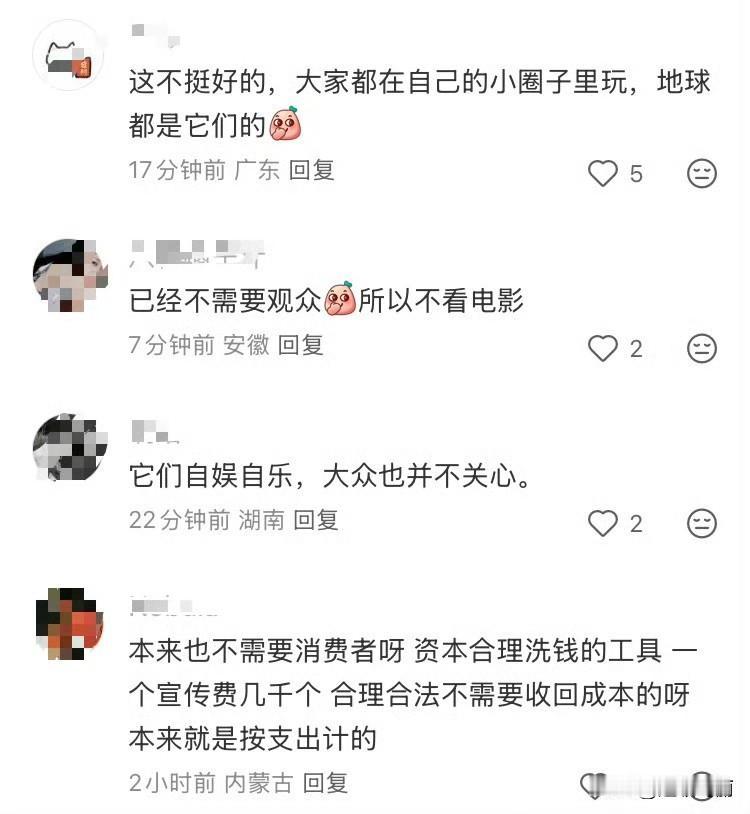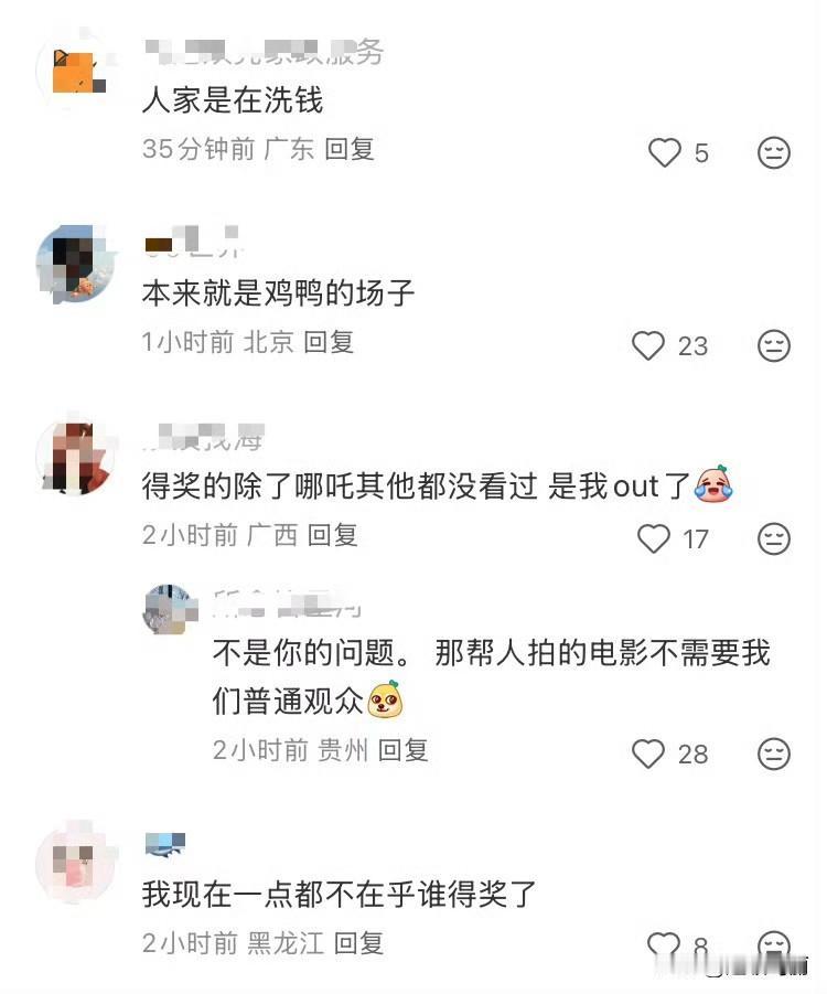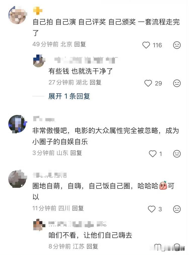 和电影奖项都在自娱自乐,塑造了一个完全不需要消费者的市场 红薯首页刷到这个,哈哈这不光是电影吧,电视剧也差不多,让内娱自己玩挺好的[笑哭]