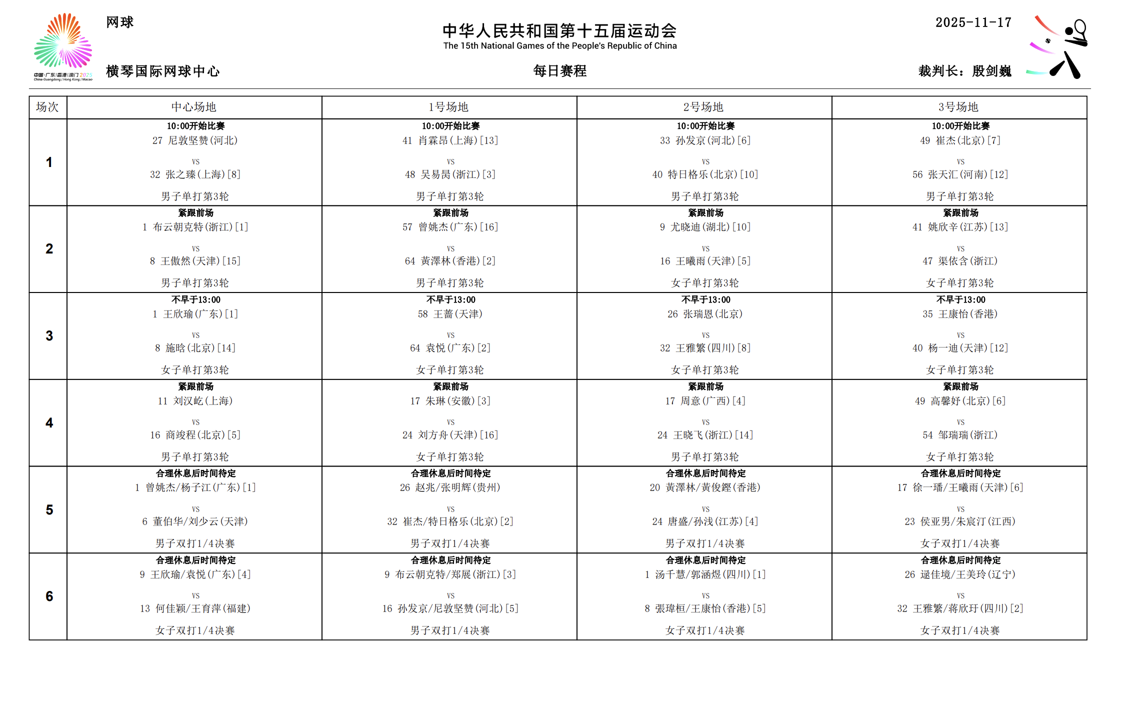 全运明日赛程,周意、王欣瑜、黄泽林、商竣程坐镇中心场