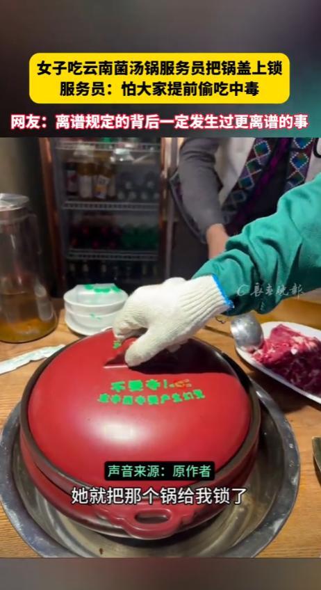 火锅盖上锁?店家的“硬核”安全操作 用心良苦了!四川成都,女子和朋友去吃火锅,可店家把锅底端上来时 2025年11月13号傍晚,成都武侯区的“滇味鲜菌火锅”店里,28岁的林晓和闺蜜刚坐下,就点了招牌的野生菌拼盘和菌汤锅。 这家店在本地小有名气,主打从云南空运来的牛肝菌、鸡枞菌,林晓早就刷到过网友推荐,特意提前预约了座位。 服务员端着锅过来时,林晓正拿着手机拍菜单,余光瞥见那口不锈钢锅,突然“咦”了一声——锅盖边缘竟然挂着一把银色的小铜锁,锁芯还亮着微光。 “服务员,这锅怎么还上锁了?”林晓赶紧叫住正要转身的服务员,闺蜜也凑过来看热闹:“难道是怕我们偷吃锅底?” 服务员是个戴眼镜的小姑娘,笑着递过来一个计时器:“姐,这是安全锁,得等计时器跳红才能开,现在才刚煮3分钟。” 林晓更懵了,计时器显示还要等17分钟,她指着锅里翻滚的汤:“这汤都烧开了,菌子看着也软了,怎么还不能吃?” “您可别小看这些菌子,”服务员拉过旁边的椅子坐下,指着墙上的科普海报,“像这种白毒伞,沸水得煮20分钟以上才能去毒,煮不够吃了会出幻觉的。” 她告诉林晓,去年店里就出过事,一对情侣不听劝,服务员刚提醒完“再等5分钟”,转身就把牛肝菌捞出来吃了,没过半小时就说“看见小人人在跳舞”,直接送进了医院。 “那次我们赔了8000多医药费,还被市场监管局约谈了,”服务员说,后来店里试过放提示牌、派专人盯桌,可总有人趁服务员不注意动筷子。 老板没办法,才花心思定制了这种带计时功能的锁,锅一烧开就自动上锁,时间不到钥匙插进去也转不动,彻底断了客人“提前尝鲜”的念头。 林晓凑近闻了闻,菌汤的鲜香混着松露的味道飘过来,虽然嘴馋,但想起新闻里“云南人吃菌中毒后的奇葩幻觉”,还是乖乖放下了筷子。 旁边桌的大叔听见她们聊天,搭话道:“我上次在云南吃菌子,店家也是这么锁的,这才是负责任,总比吃进医院强。” 17分钟后,计时器“叮”地一声跳红,服务员准时过来开锁,她用公勺搅了搅锅底:“现在可以吃了,先喝汤再涮菌,味道最好。” 林晓舀了一碗汤,鲜得眉毛都快掉下来,她拍了段“锅盖开锁”的视频发朋友圈,配文:“最安心的等待,为这17分钟的安全锁点赞。” 视频很快有了评论,有人说“这店家太机智了”,也有人分享自己的经历:“我妈上次煮菌子没煮够时间,说看见家里的狗在说人话。” 成都市市场监管局的工作人员看到相关报道后,特意去店里检查,还把这种“安全锁”做法推荐给了其他经营野生菌的餐馆。 你在外面吃饭时,遇到过这种“看似麻烦却很贴心”的安全措施吗?来评论区聊聊。 信息综合自《长春晚报》2025年11月14日《成都女子吃菌汤锅遇“锁盖”,店家:怕提前吃中毒》报道、成都市武侯区市场监督管理局官方公示及店家采访记录。