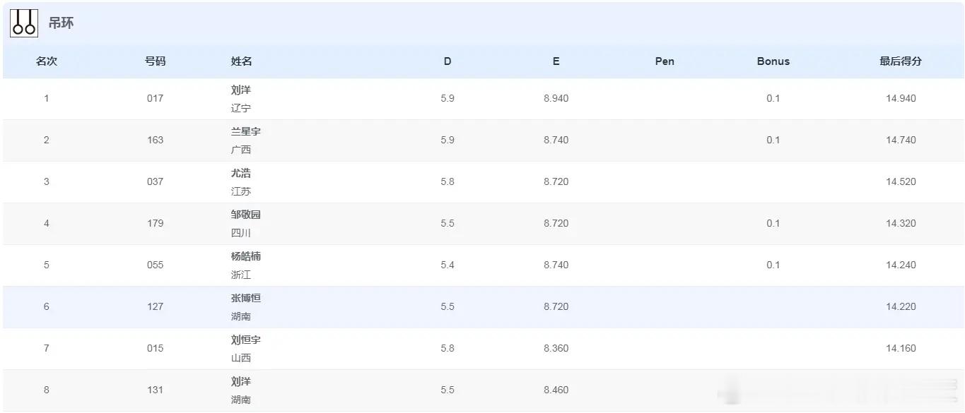 太稳了! 全运会体操男子吊环决赛,奥运冠军31岁的辽宁队老将刘洋以14.940分