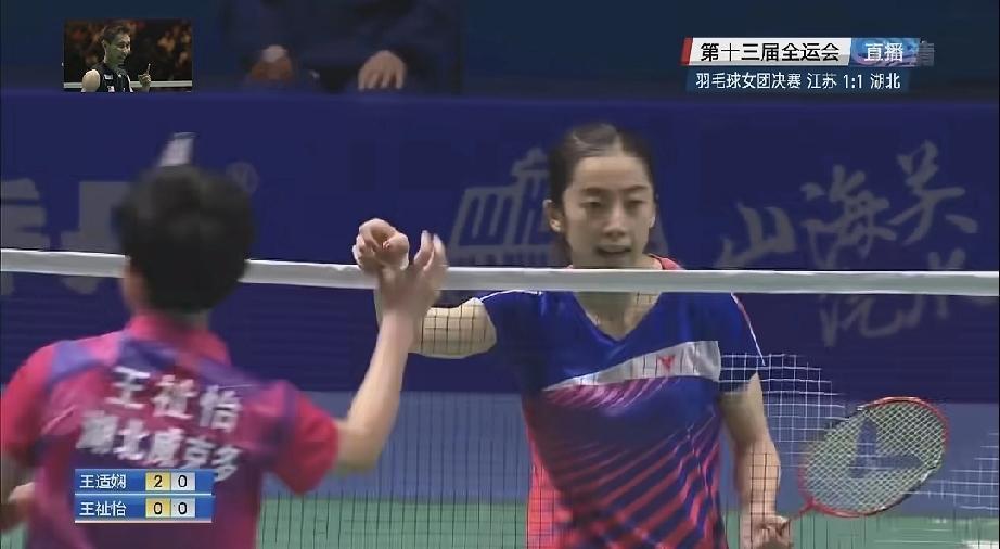 2017年第十三届羽毛球团体赛 江苏对阵湖北的比赛,其中有一场王适娴对阵王祉怡,当时王适娴27岁,已于2016年从中国国家羽毛球队退役。王祉怡当时17岁,正是潜力无限的年龄,结果已近一年离开国际赛场的王适娴2:0横扫王祉怡,年长10岁的师姐给小师妹上了一堂精彩的教学课。此场王适娴展现了高超的技能,灵动精湛的手上动作让人惊叹,可惜再也看不到这么能深刻理解羽毛球轻、巧、灵的运动员了。下场放下荣耀,上场还是王者。