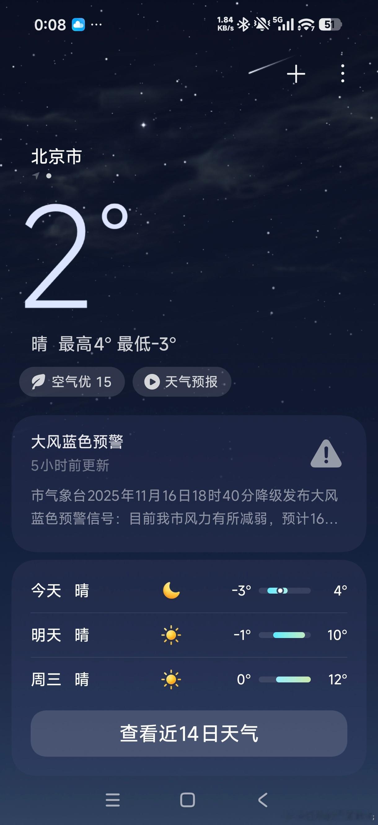 北京的温度现在是这样的,好怀念广东,虽然下周我还要过去吧。你们那多少度?舒服吗?晚安各位,祝大家有个好睡眠