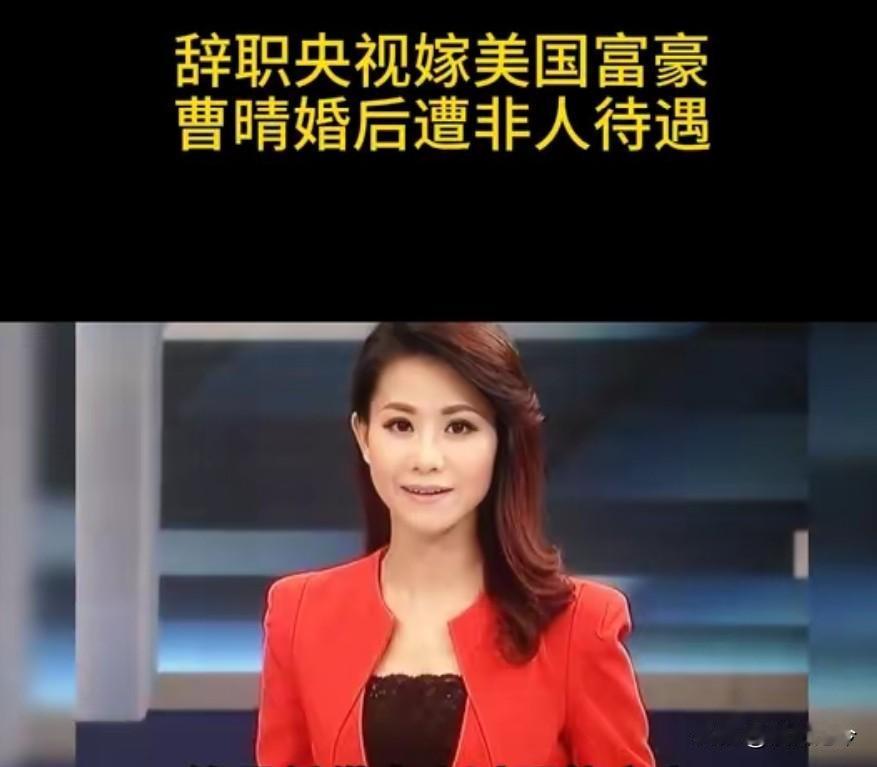 吃狗食、关禁闭,央视前才女国外被虐成“人干”?董卿想救她都难! 看看央视前才女曹晴就知道,不是每一个老男人都温柔的,要是遇到人精,也是分分钟就吸干你的“价值”。 年轻的不要、有才华的不要,同行人不要,曹晴最终选了一个大20岁的华裔富豪,不惜辞掉工作也要嫁到国外。 没想到,自从去国外后,就没一天好日子过,天天都被虐待,濒临死亡都还想着丈夫什么时候能够回心转意。 她明明是央视大才女,怎么思想如此固执呢? 曹晴可不是凭空闯进央视的,1978年生在苏州的她,是中国传媒大学科班出身,专业功底扎实到没话说。 1996年刚毕业就进了中国教育电视台做记者,后来又跳槽到北京台当外景主持,2000年直接闯进央视科教频道,成了《走进科学》的外景主持和记者。 2008年北京奥运会,她更是被委以重任,专访过国际奥委会官员和顶级运动员,连博尔特都曾是她的采访对象,那时候的她,是观众眼里前途无量的文化新星。 后来她还主持了农业频道的《聚焦三农》,不管是偏远乡村下田采访,还是对着镜头播报新闻,都做得又专业又接地气,台里上下都认可她的能力。 这样的履历,放在哪个媒体人身上都是骄傲,可她偏偏在37岁那年,把一手好牌打得稀烂。 2014年的一场高端社交活动上,她认识了美籍华裔屠中恒,对方比她大20岁,顶着富商和全科医生的名头,出手阔绰得吓人。 限量版名牌包、镶嵌碎钻的首饰说送就送,米其林餐厅、私人飞机度假轮番安排,嘴里还不停画饼,说嫁给他就能在美国当阔太,不用工作也能衣食无忧。 曹晴那时候大概是被物质冲昏了头,完全忽略了两人的年龄鸿沟,连对方的过往婚史都没深究。 家人得知后直接炸了,父亲怒斥她“为了个老头辞掉铁饭碗是疯了”,母亲抹着眼泪劝她跨国婚姻风险大,可她一句都听不进去。 央视领导也反复挽留,说她正处于事业上升期,辞职太可惜,她却铁了心要走,甚至瞒着家人偷拿户口本办了结婚登记。 2015年的婚礼办得风光无限,主婚人是侯耀华,证婚人是李肇星,名流云集,可谁能想到这竟是她悲剧的开端。 2016年移民美国后,前三个月的阔太生活确实让她满意,住豪华别墅、穿名牌衣服,有保姆伺候,可这份惬意没持续多久就碎了。 屠中恒常年出差,曹晴在国外没朋友、英语也不流利,整天守着空荡荡的别墅,孤独得发慌。 她想生个孩子陪伴自己,可每次提这事,屠中恒都躲躲闪闪,直到一次激烈争吵,才坦白自己早就失去了生育能力,结婚时一直瞒着她。 这个真相像晴天霹雳,而屠中恒也彻底撕下了伪装,开始对她拳打脚踢,醉酒后更是下手没轻没重。 他怕留下伤痕被人发现,居然用毛巾包住拳头打,让她就算报警也拿不到实质性证据。 更离谱的是,他切断了曹晴的经济来源,冻结银行卡,一年只给她买一包卫生巾,饿了就让她吃剩饭、过期面包甚至发霉罐头。 1米68的她,最后瘦到只剩96斤,肋骨根根分明,脸色蜡黄,曾经镜头前光彩照人的主持人,活成了形容枯槁的模样。 他还把她的护照藏起来,删掉她手机里所有亲友联系方式,不准她踏出别墅大门,彻底切断了她和外界的联系。 2017年8月,曹晴在邻居的偷偷帮助下找到华人律师,把屠中恒告上法庭,提交了伤情照片、过期食物照片当证据。 可屠中恒反咬一口,说她好吃懒做、故意挑起纠纷,当地法院最后只认定是“普通家庭纠纷”,没对屠中恒做任何处罚。 最让人无法理解的是,法官问她要不要离婚时,她居然摇头说还爱对方,只想让他道歉、帮自己办绿卡。 有消息说昔日央视同事得知后想帮她,可跨国维权本就困难,她自己又不愿意离婚回国,谁也插不上手。 更让人寒心的是,国内网友劝她回国重新开始,她居然怒怼“宁愿在美国当狗,也比在中国当人强”,还说网友嘲笑她没人性。 她的悲剧真的怪不得别人,不是运气不好遇人不淑,而是自己一步步选出来的。 当初被奢侈品和豪门梦冲昏头脑,不顾家人反对放弃铁饭碗,婚后被欺骗、被虐待,却因为好面子、怕回国丢脸,还惦记着那虚无缥缈的绿卡,连止损的勇气都没有。 央视的平台给了她别人求不来的机会,扎实的学历让她本该有无限可能,可她偏要把人生希望寄托在别人身上,最后落得这般境地。 其实婚姻里最该看重的从来不是财富和年龄,而是真诚、尊重和人品,把幸福寄托在物质上,本身就是一场豪赌。 各位读者你们怎么看?欢迎在评论区讨论。
