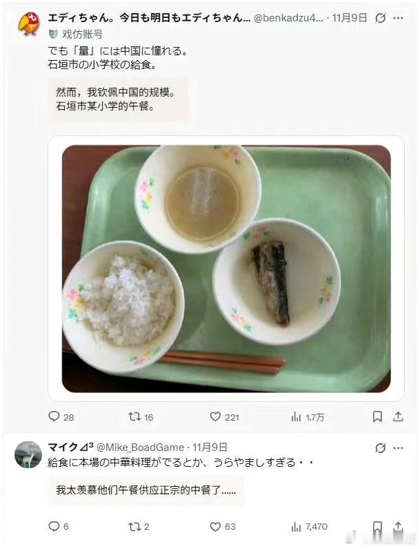 日本挑衅还在升级,如何让日本一次性长够记性,就要知道日本真正怕的是什么 因为高市早苗以在任首相的身份,在国会质询这样的正式场合,宣称台海有事就可以被认定为日本的“存亡危机事态”,行使集体自卫权。这是日本政府第一次把军事干预中国统一的野心明朗化。为了配合高市早苗,日本外务大臣茂木敏充称高市早苗无需撤回军事干预台海的言论,日本防卫大臣小泉进次朗还叫嚣日本自卫队将确保台海和平稳定。日本自卫队还投入了5.8万兵力,300架军机以及航母进行军事演习,重点模拟"海峡方向闪击战",突出对关键水道的军事干预能力。日本议员议员吉田康一郎在11月15日转发我驻日本大使吴江浩的发文并评论:“你可能不知道,但签署日本投降书的是中华民国,而不是你。我国自1895年以来对台湾的统治,因其文明程度而得到国际社会的公认,而台湾人民却非常亲日。你们这些在1949年10月1日之后才建立这个国家的人,没有资格发表任何意见。”日本的挑衅在不断升级,猖狂程度迅速拉升至我们无法容忍,这届政府真是彻底不装了。日本政治在战后持续的极端右翼化已经发展到要再次针对中国赌国运的临界点了。中国很多年人最近在琢磨怎么做,才能让日本一劳永逸地长记性,如何通过彻底地改造,从根本上去除日本的侵略本性。这就需要研究日本人最怕什么。是原子弹和李梅烧烤留给他们的记忆让日本人最恐惧吗?我认为并不是,那种痛苦再严重,也只是瞬间,而且体验的人毕竟只占日本人口比例的很小一部分。虽然有不少网民希望让日本消失,但这种话只能用来出出气,也不可能真的实施,而且也不是让日本人痛苦体验感最强的方式。日本人最怕的应该是历史上曾经无时无刻不在折磨着绝大多数日本人的饥饿感,重新成为日本人的日常生活体验,并失去改变的能力。因为日本的自然条件就是山地多,平原少,日本人均耕地数量只有0.52亩。即使在现代的科技条件下,也无法实现粮食自给自足。日本的粮食自给率最新数据是38%,大部分粮食都依赖进口,这还是建立在日本人平时吃得很少的基础上。去过日本的人几乎都要感叹日本人的饭量太小了,经常就是几碟小菜、一份白饭和一盏汤,这样的搭配,中国人是根本吃不饱的。日本人的饭量小到什么程度,看看前几天日本人看到中国驻大阪总领事薛剑转发了一张中国中学生在食堂午餐的视频后,有多震惊就知道了。再对比一下日本学生的午餐学生都在长身体的年龄阶段,日本学生的饭量也不可能天生就比中国学生小这么多。说到底,都是因为粮食物价和用餐成本,不得不人为减少饭量。米饭是日本最重要的主食,但日本的人均大米年消费量只有50公斤多一点,平均每天3两都不到。日本大米虽然能达到90%的自给率,主要是因为日本人吃得太少。即使加上面食,日本人均年消费量也不到90公斤。日本人的蔬菜消费量也只有中国的四分之一到三分之一,按照中国学生的饭量,日本学生的这点午餐供应量,吃个半饱都不够。日本人吃得少,并不能用日本所谓的“少食”文化进行解释,根本原因就是日本的高物价抑制了他们的饭量。看看日本大米的物价一再起飞,日本超市5公斤装普通大米均价约合人民币196元,较去年同期上涨近一倍。日本有些地方政府在发大米代金券,以缓解日本家庭的生活成本上升。日本虽然现在还是发达国家,但大多数人还是没有真正解决吃饱的问题。日本人的“少食文化”,也不是因为古代日本人比中国人更懂养生,而是自然条件导致粮食产出少,长期驯化出来的,是一次次的饥荒和长期的饥饿被迫形成的习惯。古代日本甚至还有一种极为残酷的“山林放逐制度”。家里老人年纪到一定岁数,就会被遗弃,任其自生自灭。日本电影《楢山节考》就讲述了日本古代的一个山村,由于粮食短缺,老人活到六七十岁,就要被儿女送到深山里去“供奉山神”,其实就是因为粮食短缺,被故意遗弃,还形成了固定习俗。中国人历史上也饱受饥饿困扰,但中国的人均耕地1.4亩,比日本人均要多不少。新中国成立后,以最彻底的方式完成了土改,又用不到三十年的时间,通过集体经济模式进行了大规模农田水利建设,还完成了工业化,建立起了化肥工业,并在农业良种技术取得了重大突破,这样,粮食增产三个最主要的客观条件在七十年代末都具备了,吃不饱饭的问题也就逐渐成为历史了。现在,困扰中国人的是抵御不住美食的诱惑,管不住自己的嘴,吃得太饱,影响了身材,又对健康不利。如果日本人失去了现在的优势产业,没有足够的收入进口所需的粮食,那么日本人又要整体回到被饥饿感折磨的年代。美国人对日本的驯化很成功,很多日本人对占领者麦克阿瑟还感恩戴德,当其离开日本时,还得到了日本人夹道欢送的“救星”般待遇,其中有一个原因特别重要,是麦克阿瑟缓解了日本人在战后的粮食危机,帮助日本人告别了那个可怕的饥饿感。二战刚结束那段时间,日本东京一个成年人的每天的粮食配给只有200克,还不能保证每天都有,麦克阿瑟迅速组织了60万吨粮食救急,后来又说服美国国会,给日本运来150万吨粮食。麦克阿瑟在那代经历过饥饿折磨的日本人心里,不是占领军,而是拯救者。对大多数普通人来说,饥饿才是最可怕的折磨,日本人也不除外。日本距离饥饿有多远?就差一个工业化。没有工业化加持,就距离回归饥饿年代不
