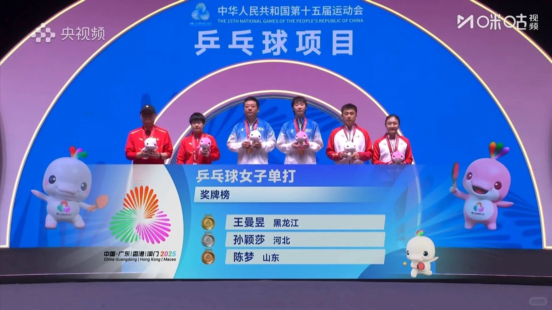 全运会女单颁奖典礼