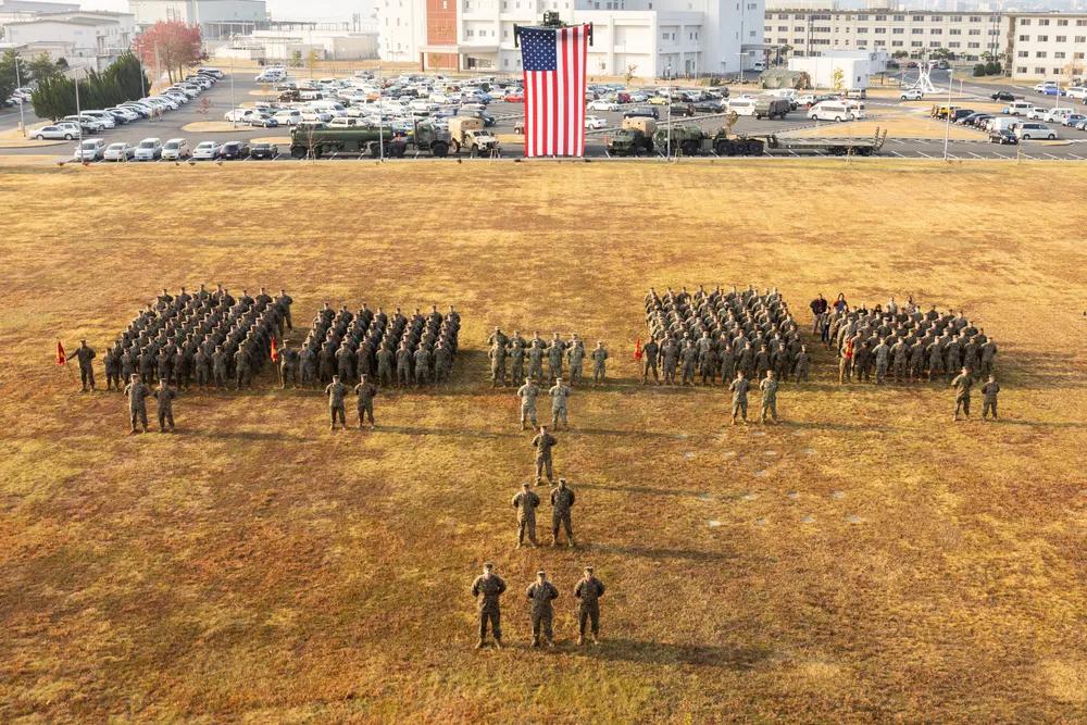 10月27日,隶属于驻日美军岩国海军陆战队航空站总部中队,美国海军陆战队和海军陆战队员,在日本岩国海军陆战队航空站举行的“积极护盾23”演习闭幕式上合影。“积极护盾”是年度演习,旨在测试和提高航空站在岩国海军陆战队航空站及该地区其他设施的基地防御行动中的反应能力,以维持军事行动并支持美日同盟。