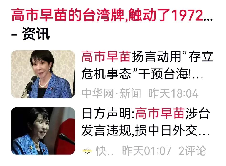 怎么看高市早苗的台湾牌,说四点看法? 其一,高市早苗的台湾牌,触动了1972年的历史契约。那不仅是中日关系正常化的基石,更是一份战术合同:中国放弃战争赔款,换取日本对“一个中国”的承认与反省。 其二,高市在台湾问题上的越界言行,无异于单方面撕毁这份契约。她的挑衅不仅激活了休眠的违约条款,更揭开了一份迟到50年的历史账单。 其三,她以为在挑战中国底线?实则动摇了日本自身的豁免权。当日本选择违约,中国便有权重新审视赔款议题。这场政治赌博,正将日本置于被动。 其四,历史账单已被激活——无关我方选择,全系某些人的无知与冲动。地缘棋局,落子无悔,代价或将远超想象。 对此你怎么看?
