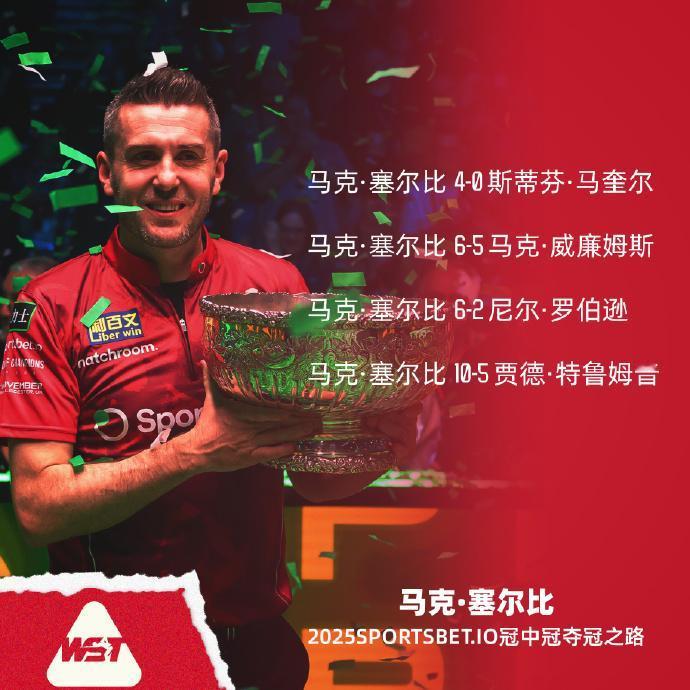 斯诺克:2025冠中冠马克·塞尔比以10-5战胜贾德·特鲁姆普夺冠! 北京时间11月16日至次日凌晨,2025斯诺克冠中冠(邀请赛)结束决赛的争夺,最终,经过两个阶段的比拼,塞尔比以10-5赢下特鲁姆普首次夺得冠中冠冠军!在拿到本赛季首个冠军的同时,结束了9个月的冠军荒。 比赛过程: 全场比赛马克·塞尔比打出四杆破百(102、138、101、132)和五杆50+(70、99、65、64、60),贾德·特鲁姆普打出两杆破百(111、114)和三杆50+(73、71、61)。 第一阶段上半场贾德·特鲁姆普打出两杆破百(111、114)和一杆50+(73)取得了3-1的领先优势,下半场马克·塞尔比连轰四杆50+(70、99、65、64)将比分反超至5-3,第九局特鲁姆普打出单杆71分获胜; 第二阶段上半场过后马克·塞尔比总比分8-5领先,中场休息后塞尔比连续打出破百,连下两城锁定胜局,最终马克·塞尔比10-5战胜贾德·特鲁姆普,首夺斯诺克冠中冠冠军! 奖金分布: 冠军:15万英镑(约137万人民币)。 亚军:6万英镑(约54万人民币)。 四强:各3万英镑。 1 八强:17,500英镑/人。 十六强:12,500英镑/人(约11.4万人民币)