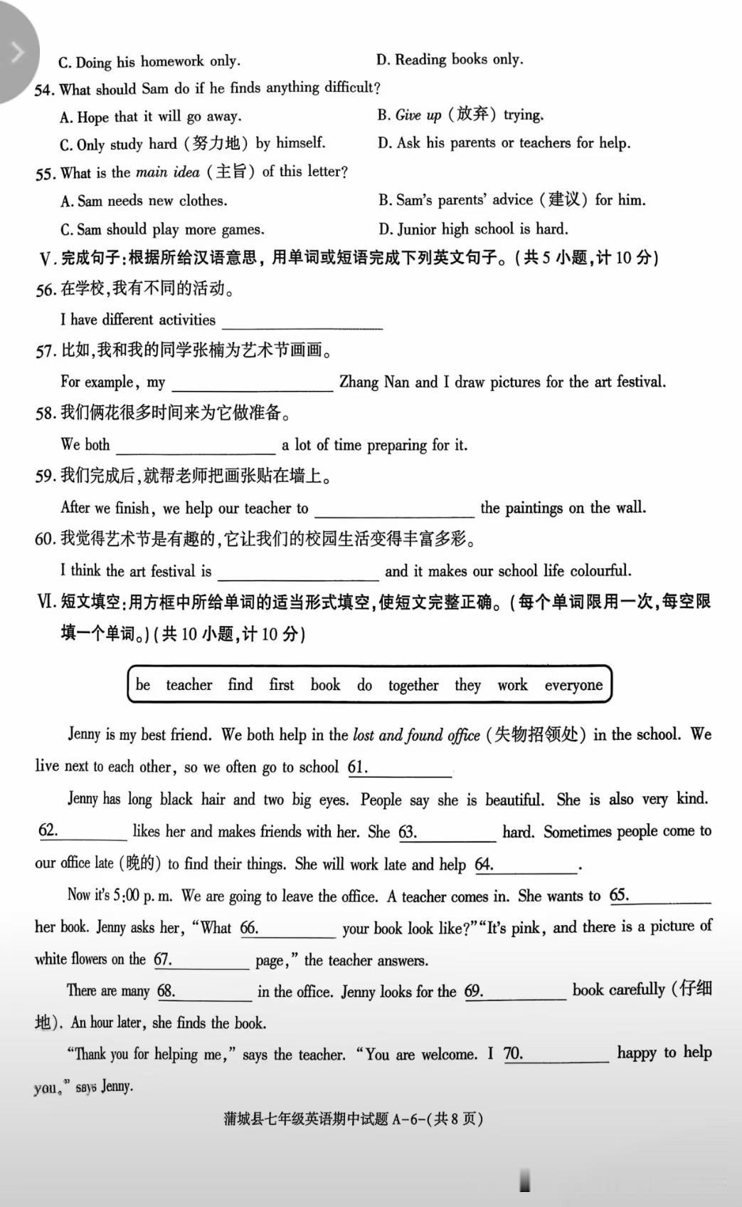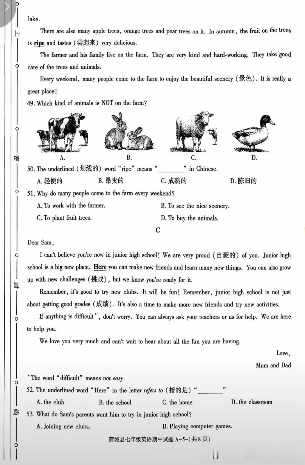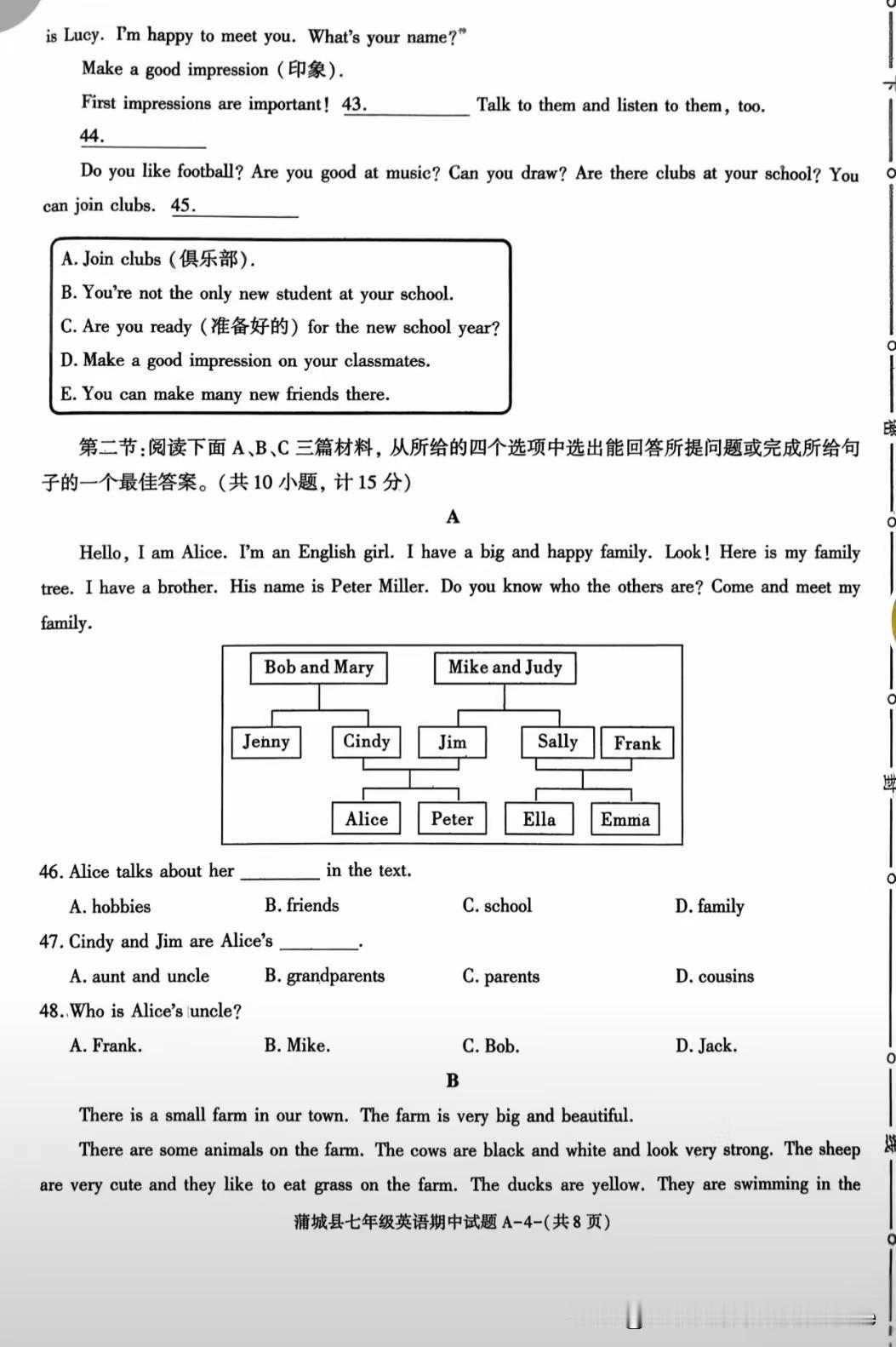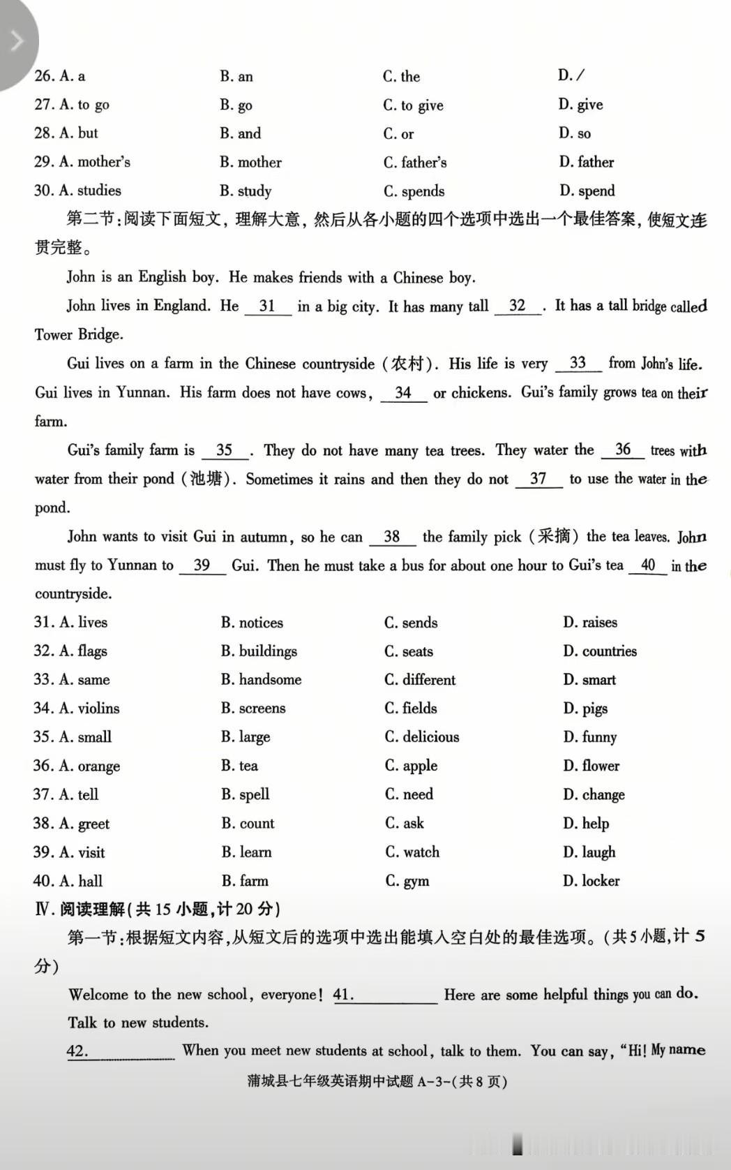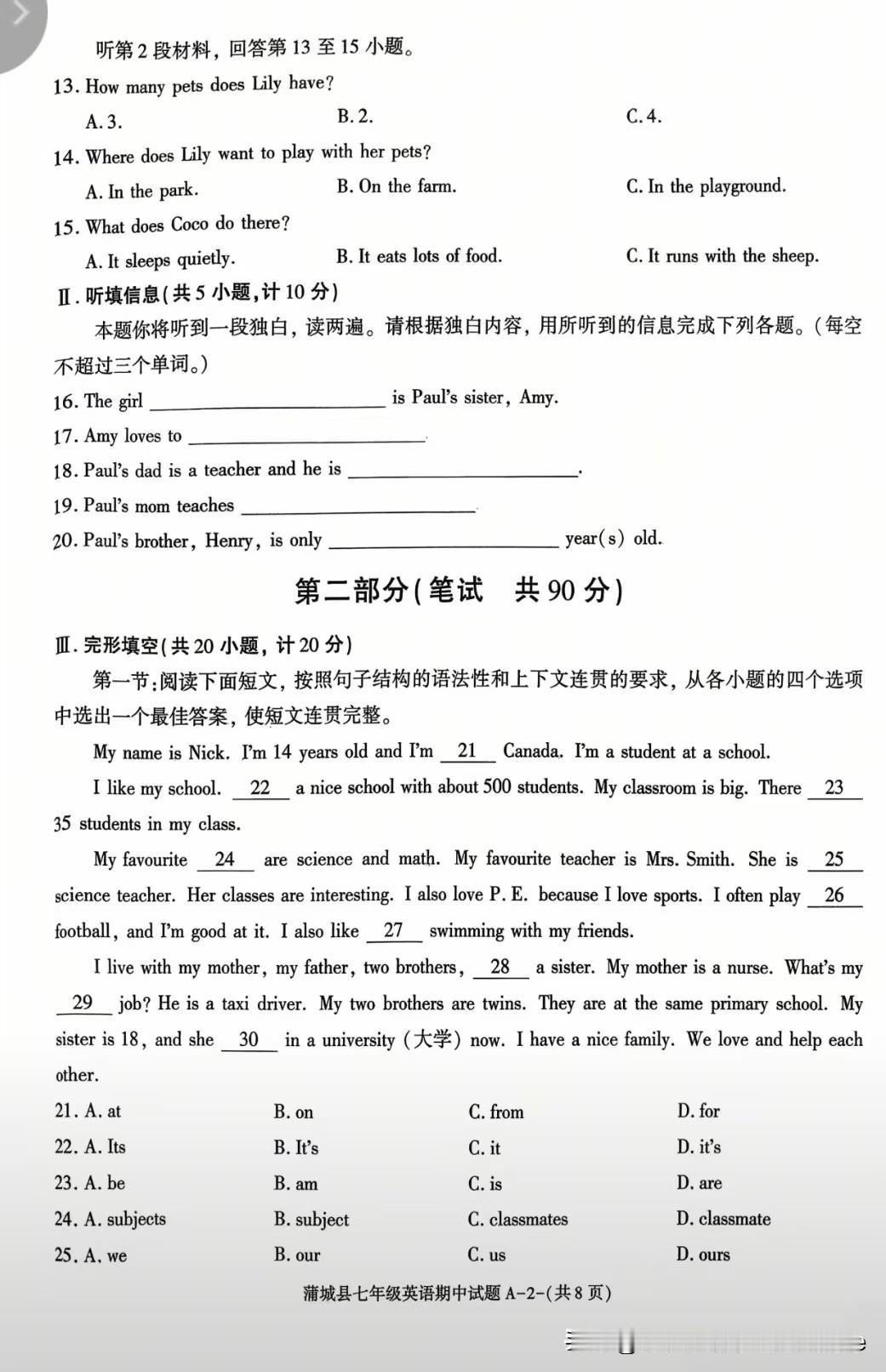 这份试卷主要考查基础语言知识运用、语篇理解与表达能力,符合八年级英语的学习重点,