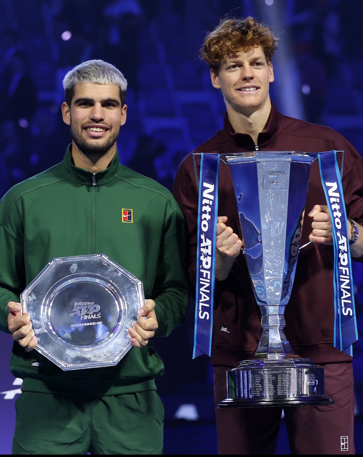辛纳 7-6(4) 7-5 阿尔卡拉斯,连续第二年赢得ATP年终总决赛冠军。而且再一次都没丢掉过一盘。历史上第二位连续两届ATP总决赛夺冠且未失一盘的男子球员。在都灵取得十连胜。在都灵取得20盘连胜。整个比赛期间只破过一次发球局。✅职业生涯第24个冠军✅ 2025年第6个冠军✅第59次击败前十球员✅最近78场比赛赢了71场✅自2024年上海大师赛以来,硬地战绩为52胜3负他轻松做到了连续两年击败世界排名前 8 的选手。你可以逃跑,但你躲不过詹尼克·辛纳。🇮🇹❤️