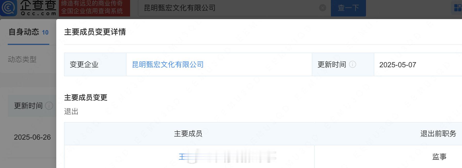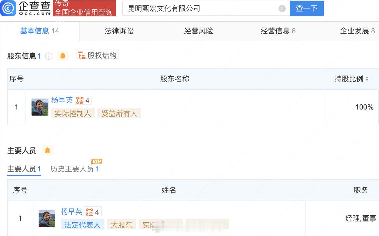 【】近日,云南寻甸县网红“上拉如”因酒后驾驶轿车肇事逃逸,致两名电动自行车驾乘人员受伤,引发社会广泛关注。 企查查APP显示,今年5月,昆明甄宏文化有限公司发生工商变更,王拾富(上拉如)卸任监事,同时该公司财务负责人发生变更。该公司成立于2024年,法定代表人、经理为杨早英(小英),经营范围含食品互联网销售、互联网直播技术服务等,由杨早英(小英)全资持股。