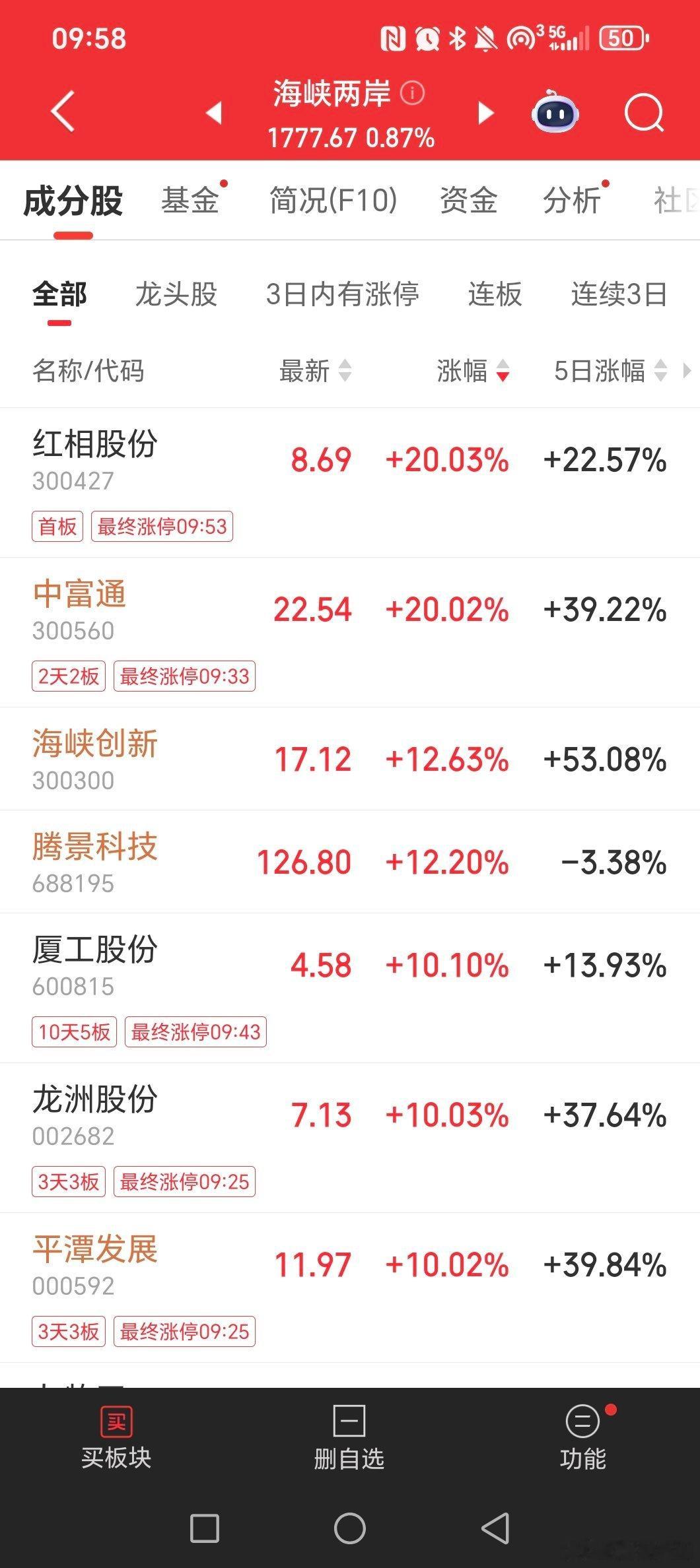 海峡概念,受消息刺激,龙头集体一字涨停。或者秒板!!!平潭发展,海峡创新,中富通,厦工股份,龙洲股份那些电池光伏受宁德时代大跌影响,以及最近持续上涨影响,集体大跌!!