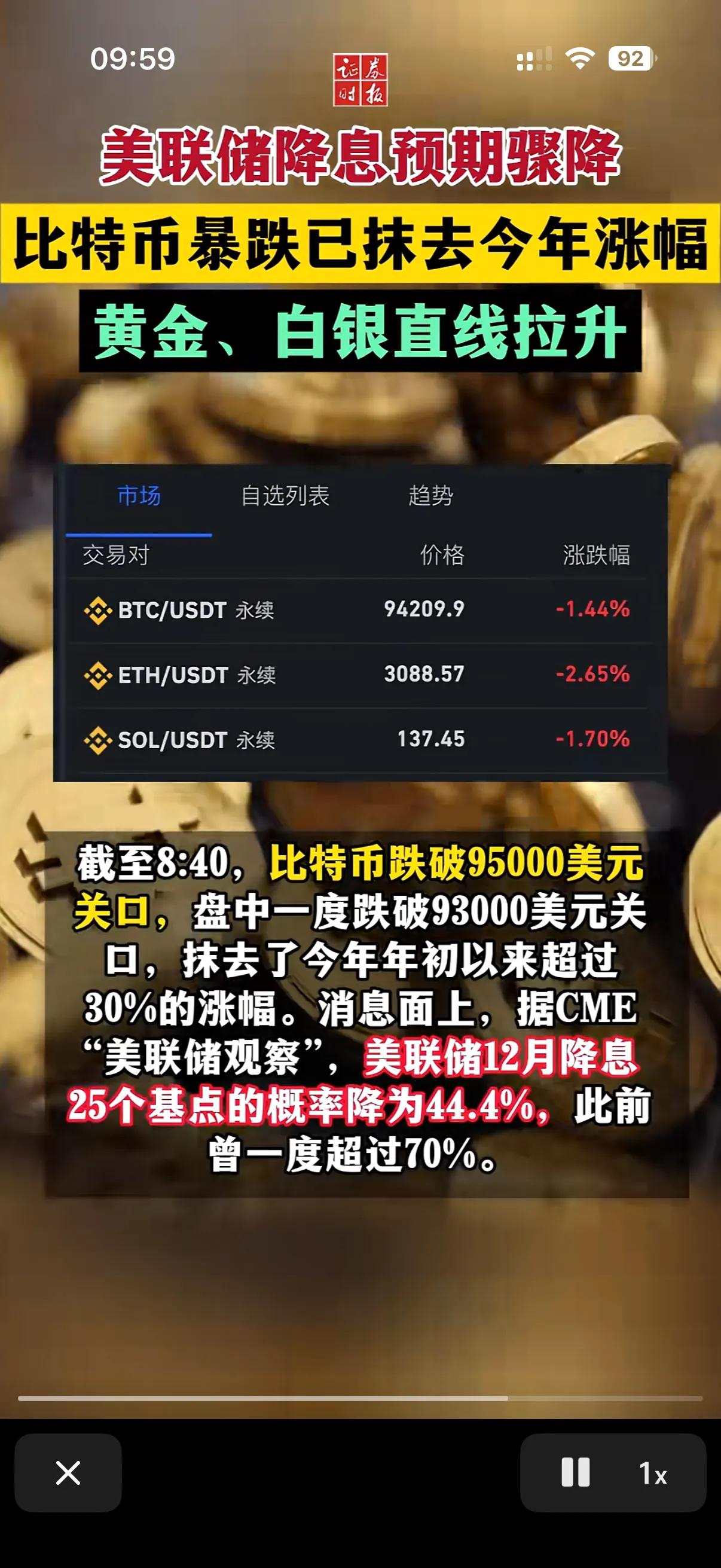虚拟币又暴跌了! 谁能想到前一阵暴跌后的虚拟币刚有所上升后,因为美联储降息的骤减,又再一次的进入暴跌模式! 不但把之前一年涨的部分给抹掉了,海有望向下继续下跌! 可以说这一个月来的虚拟币反复上涨和下跌,已经把很多加杠杆投资的人士完全给弄爆仓收割掉了! 目前统计到的因为爆仓资金被清掉的看多的居多大约有4.7亿美金,空仓被清掉的资金位1.1亿美金! 这只是实物本金! 事实上受这波黄金和虚拟币下跌影响其他的投资产品也展露出了下跌通道!
