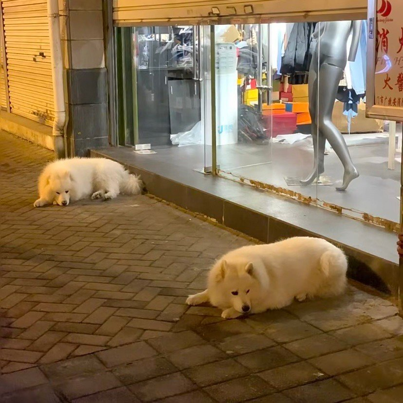 萨摩耶:主人让我们cos被偷走的那对石狮子