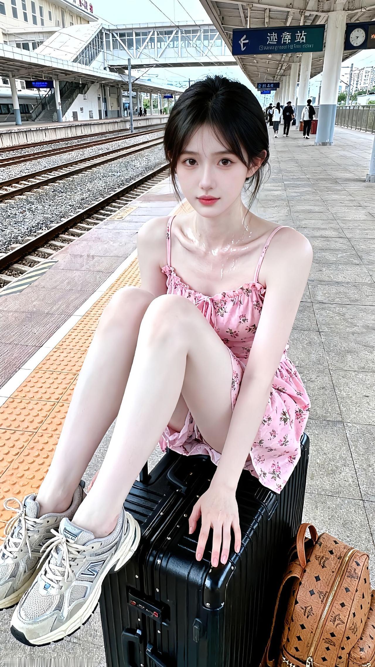 元气少女在车站,粉色裙摆随风飘扬💗分享一张最近随手拍的照片 随手拍原创图片分享 一张照片分享今日天气