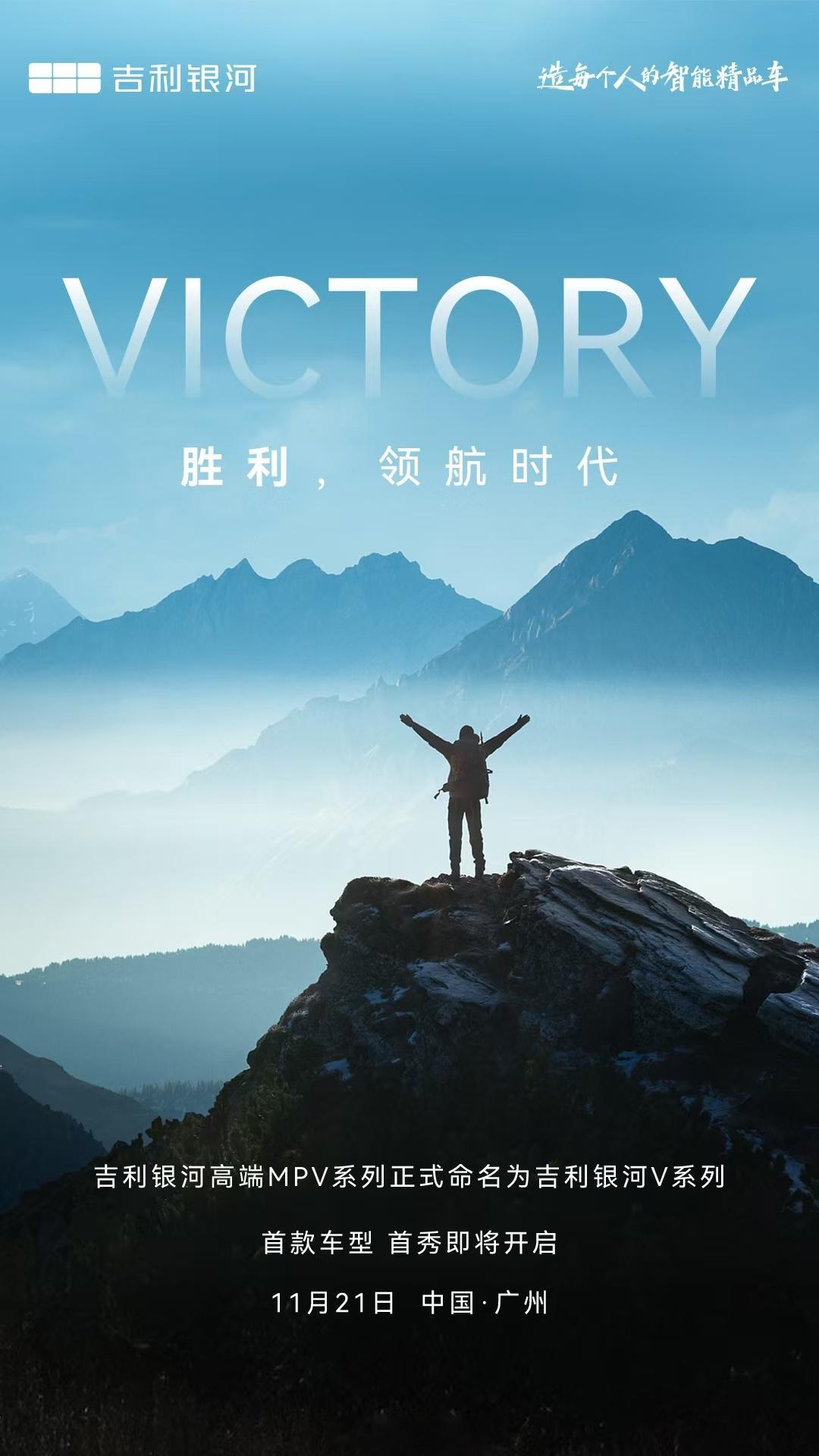 吉利银河高端MPV系列,正式命名为吉利银河V系列。11月21日将在广州车展全球首