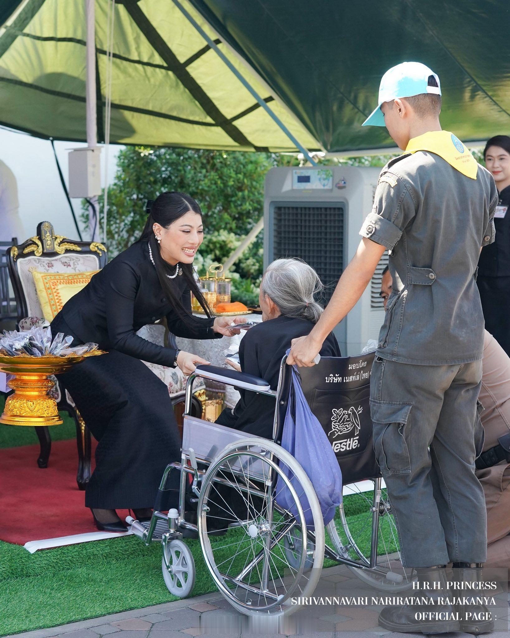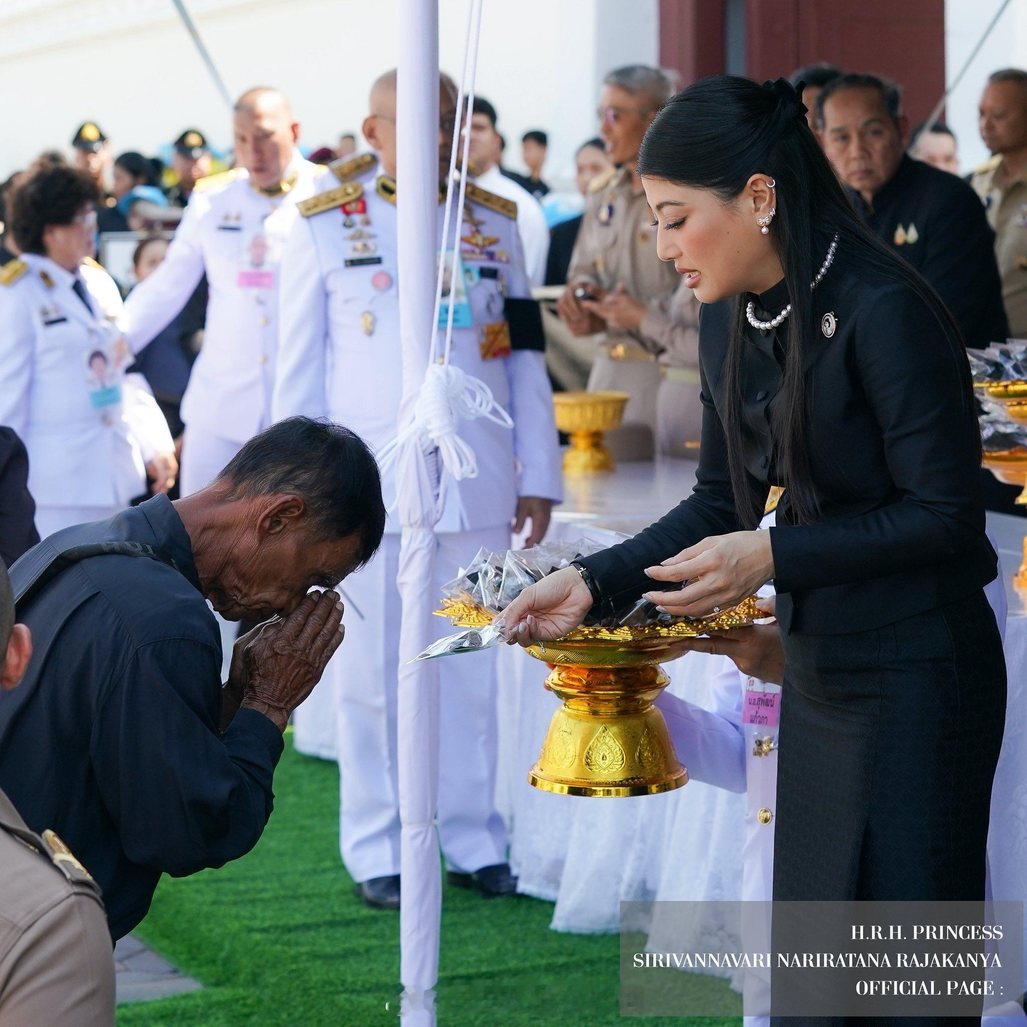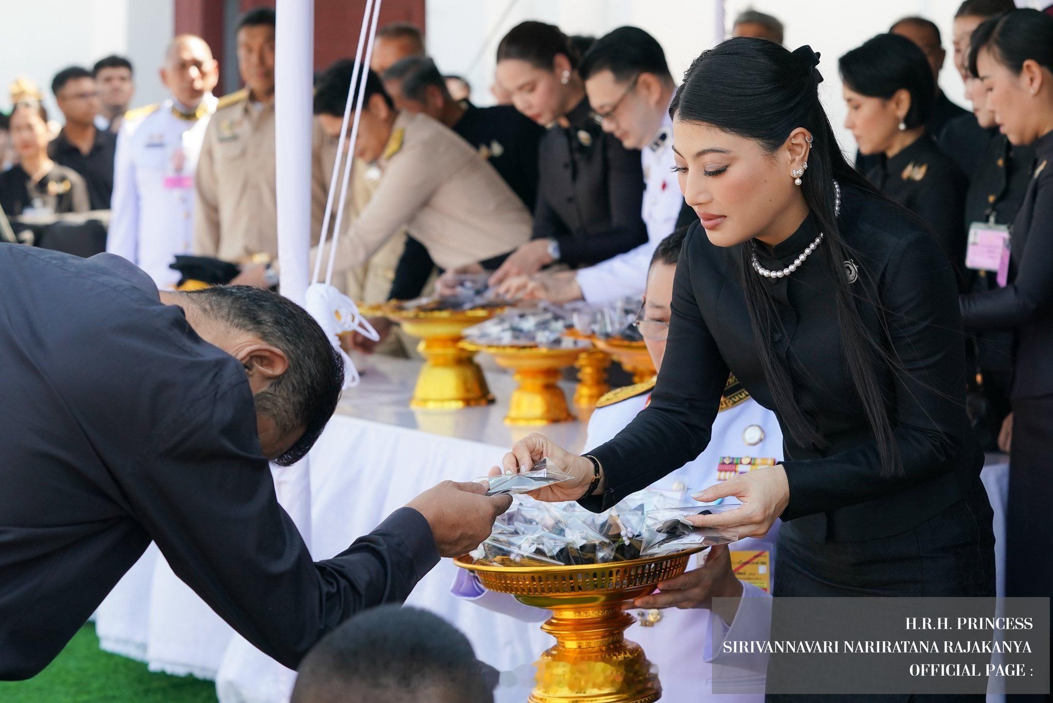 2025年11月16日,镇宅向暹罗民众发放自己制作的黑色丧带胸针。
