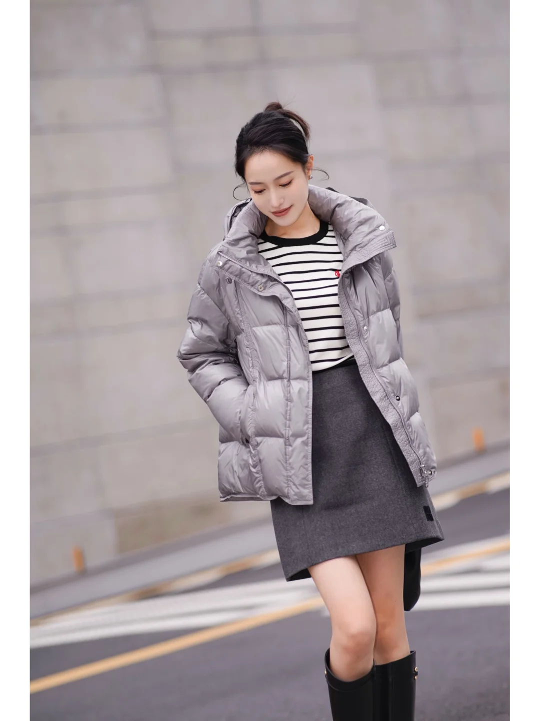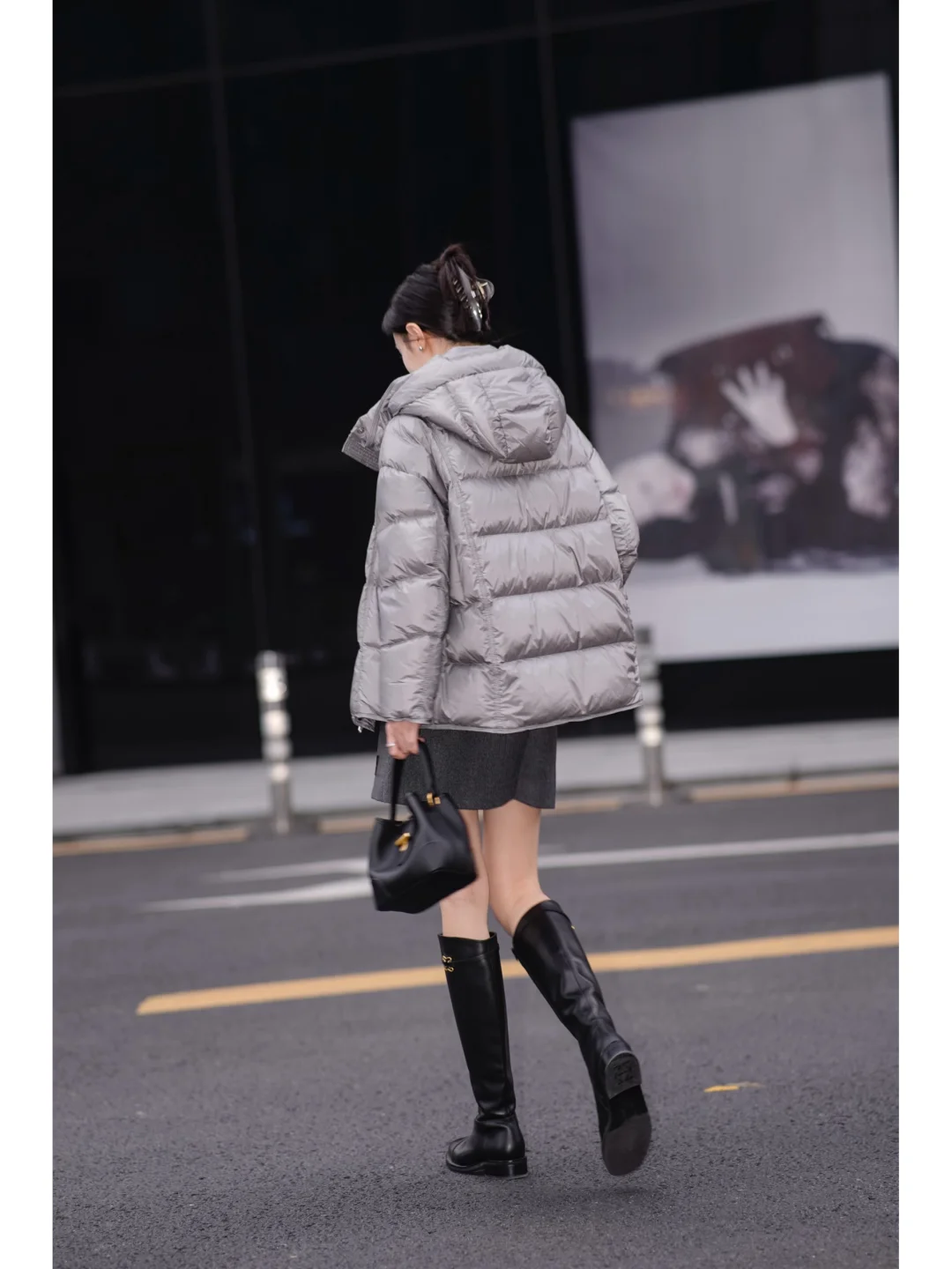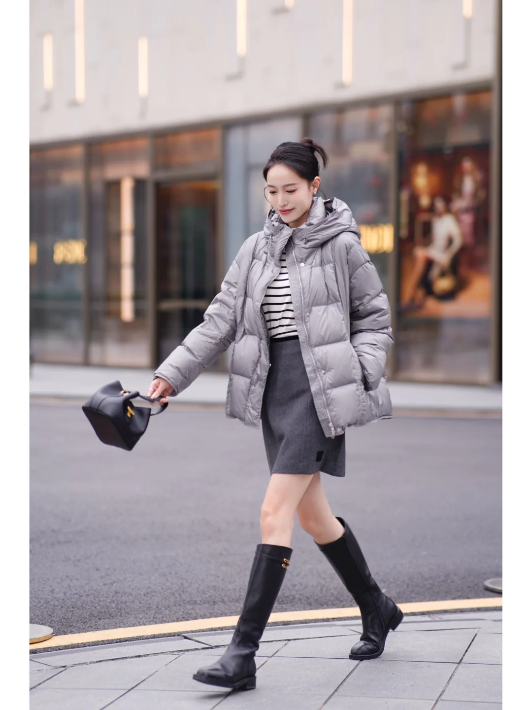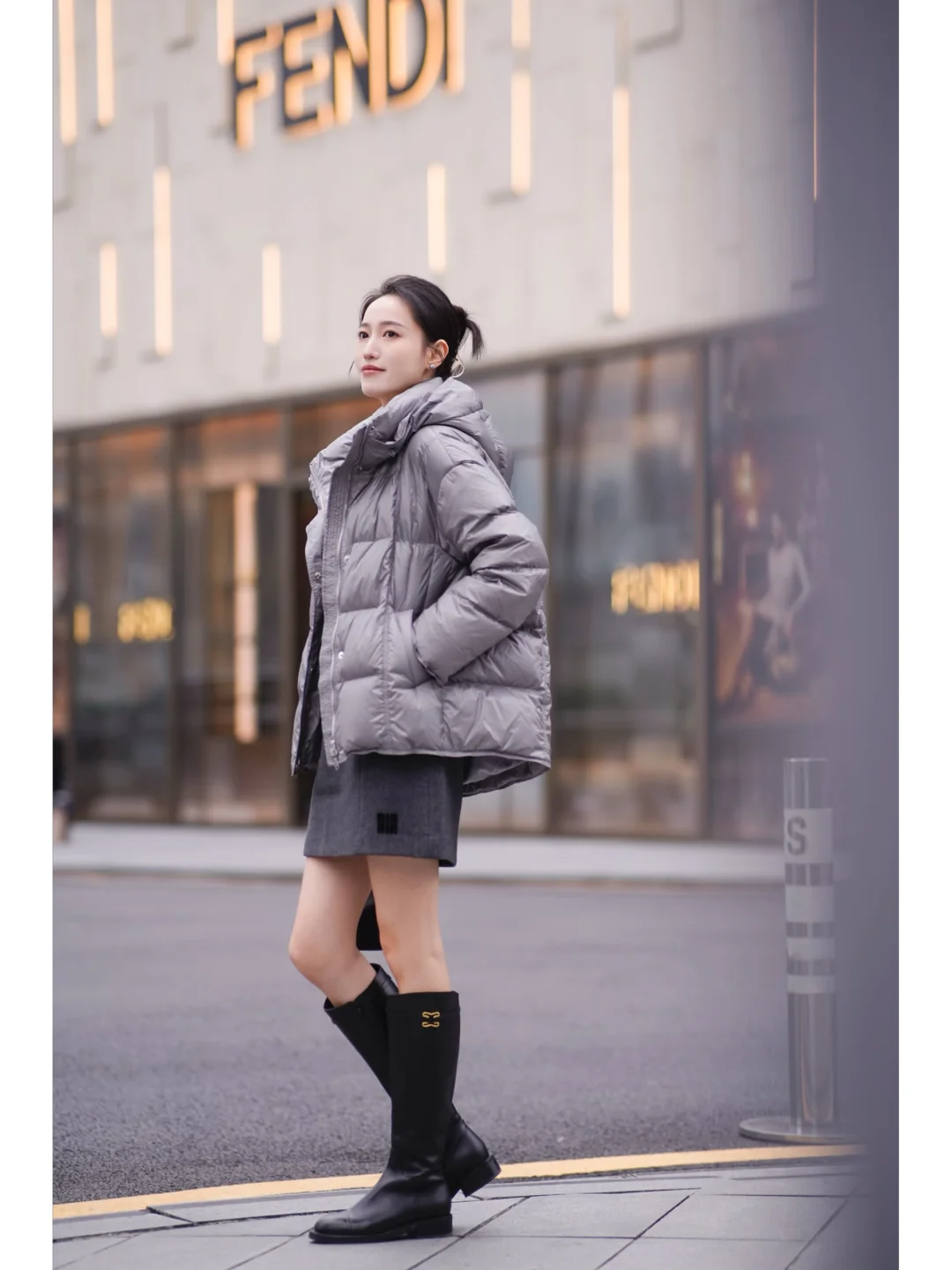 一眼就喜欢上的灰色羽绒服 轻盈又保暖!搭配长靴时髦又有层次感 温度和风度都get✔️