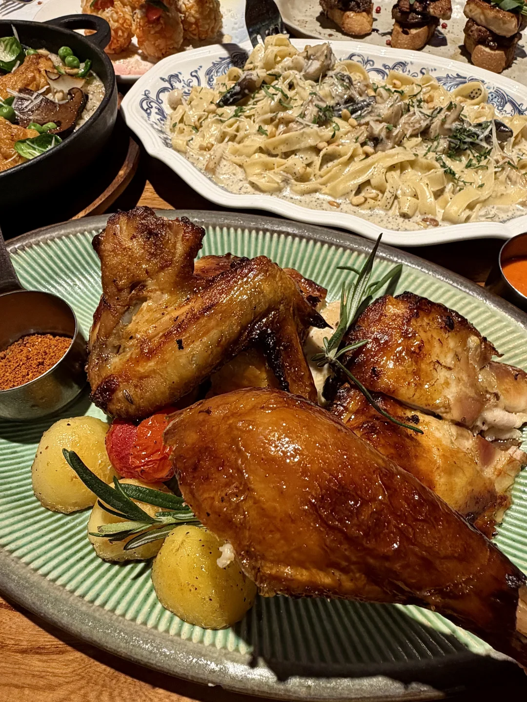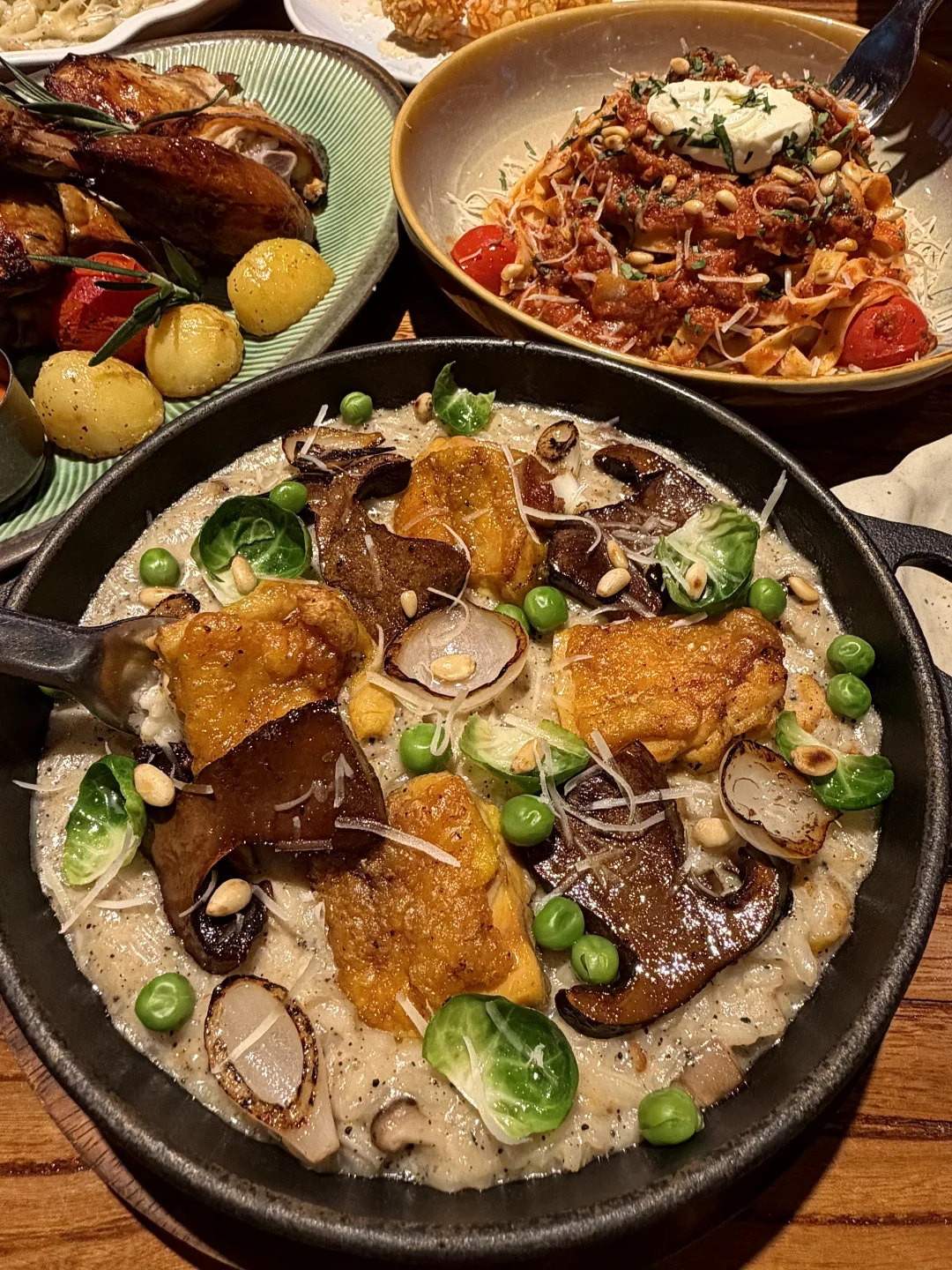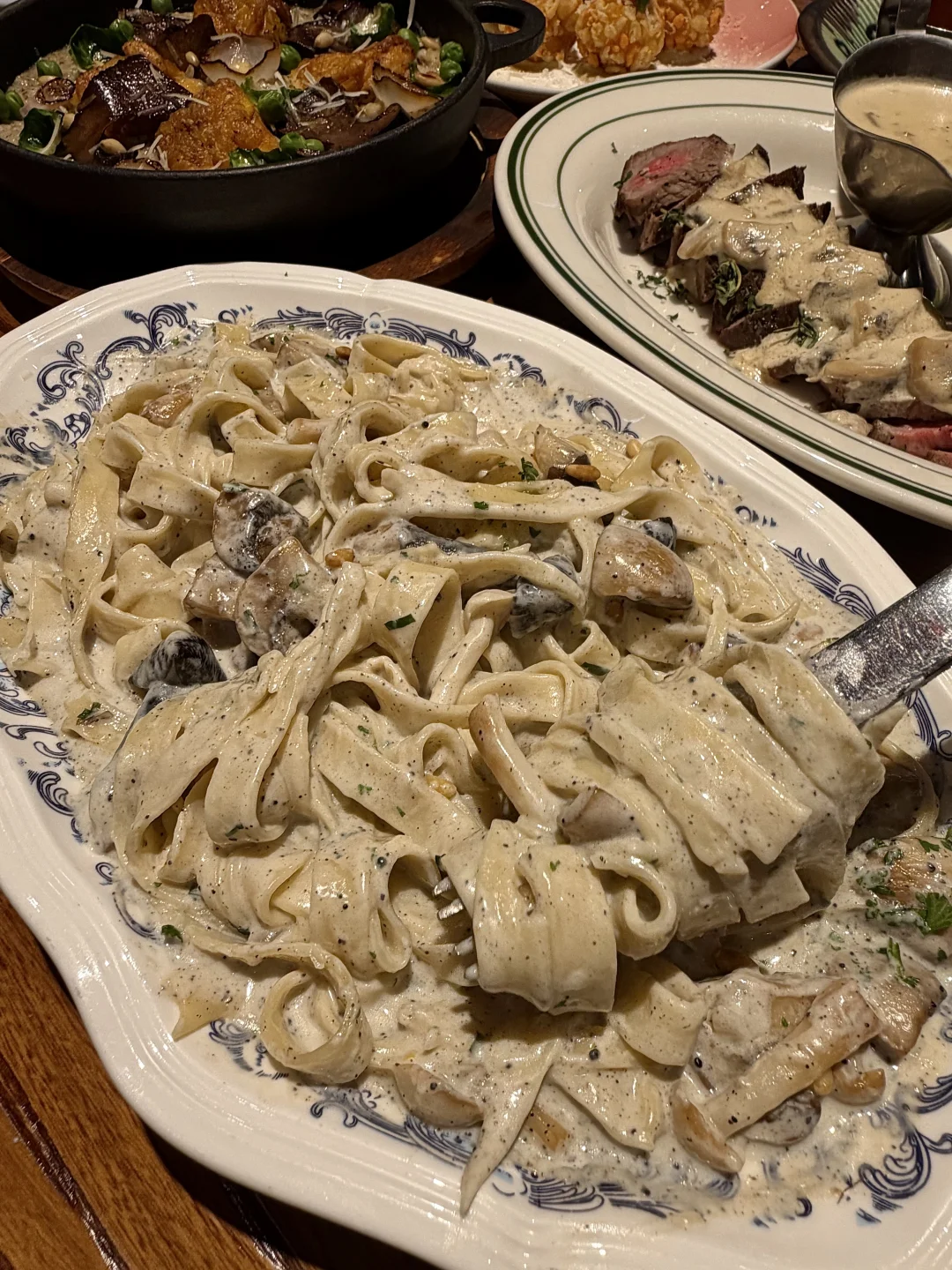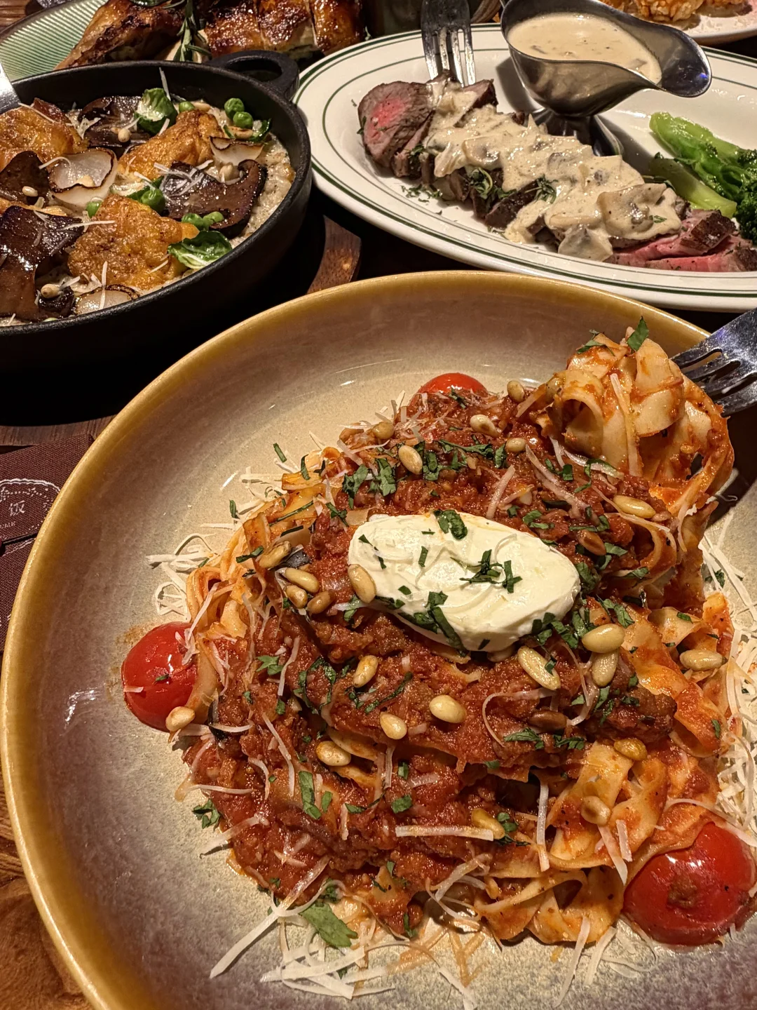 在上海又花小钱装大杯了🥹可以看到东方明珠! - ✔️黑松露蘑菇意面 每一根意面都裹满浓郁黑松露酱🍜嗦得停不下来! ✔️鲜牛肝菌鸡肉炖饭 鸡肉jujuju嫩搭配大块牛肝菌和炖饭~口感层次贼丰富🤤!! ✔️奶油蘑菇牛排 牛排蘸上奶油蘑菇酱🥩奶呼呼奶香浓郁!! ✔️鸡尾酒 喝了好多杯漂亮酒都还蛮有特色🫧酸酸甜甜嘎嘎解腻!