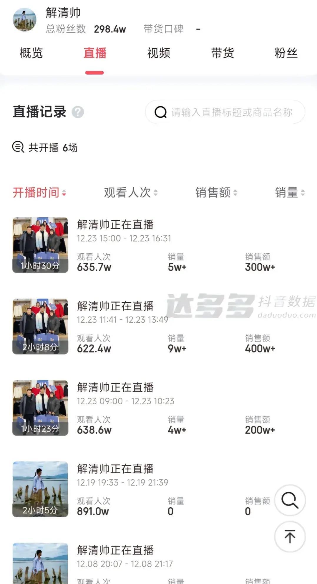 实际上,解清帅一天直播了5场,尽管首次直播略显紧张和生疏,不够熟练,但上午和下午的三场合计销售额就达到了900万元,晚上那两场人气更高,销售额更是节节攀升,全天销售额预计能够达到2000万元。