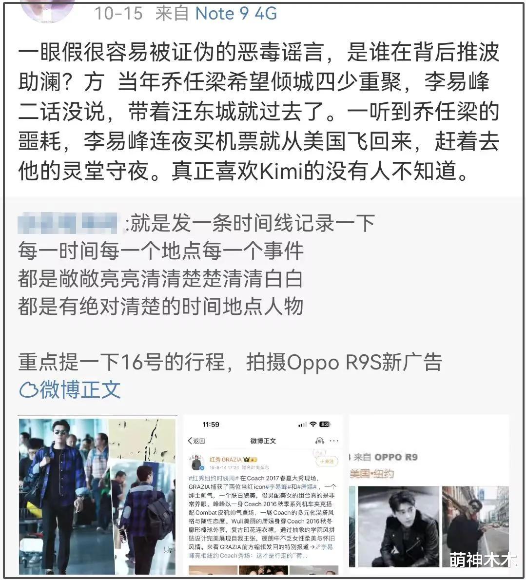 早年李易峰和乔任梁在同个选秀节目里出道,李易峰大火之后和王思聪有过接触,似乎还是好友,因此李易峰也被牵扯到乔任梁的相关谣言当中,逼得李易峰粉丝晒出时间线,澄清李易峰在乔任梁去世的时候远在国外工作。乔任梁父母也一再强调大家不要传播谣言,过度解读。