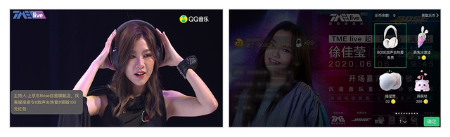 Bose独家冠名徐佳莹“放声去热爱”专场,而TME live为品牌打造的场景化营销,既包括先导宣传片、主持人口播的简单露出,也有定制礼物、歌手在直播中使用品牌产品等深度呈现与曝光。