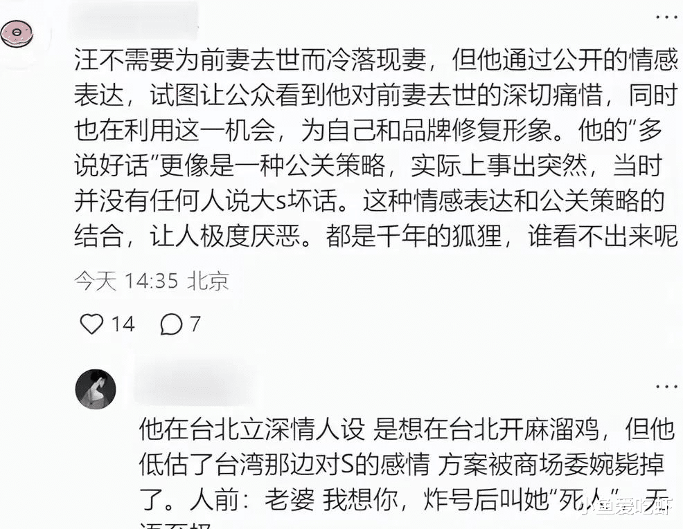 小编的想法是,不论汪小菲在这个特殊的时刻究竟真心与否,在舆论的场中也要心态从容。