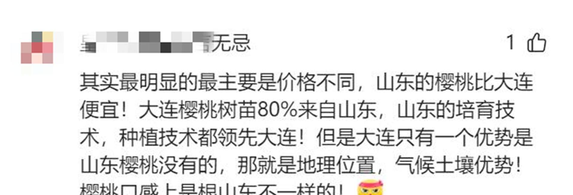 她对身边的买菜伙伴说道:“这大连樱桃怎么贵这么多,能有啥区别啊?