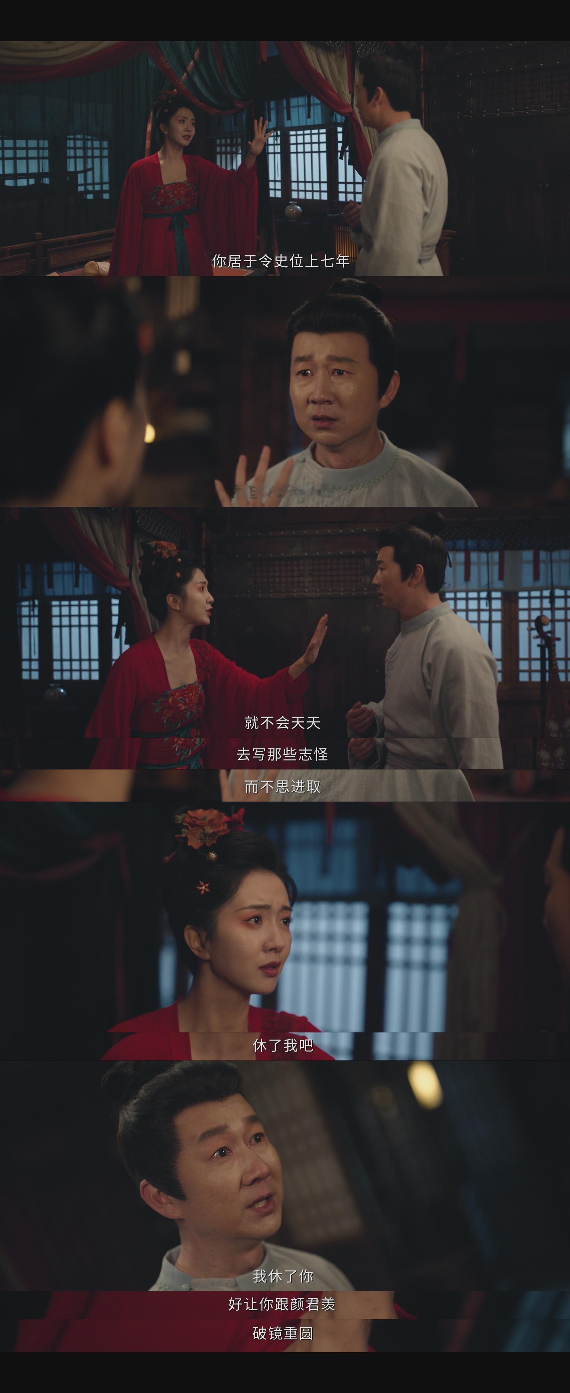 看完22集又倒回19集重新拉了一遍诺皋记,本来以为是两个互相猜忌的夫妻争吵不休,甚至柜子床下还藏着人,但22集里,虽然台词和调度都和19集差不多,但竟然是完全不同的两种情绪,瞬间有罗生门内味了。红药和孟不疑边流泪边对对方说着狠话,一个指责对方官微言轻不足以托付终身,一个怀疑对方和老相好破镜重圆,但怎么眼里的泪没有断过呢,此刻终于懂了那句“执手相看泪眼竟无语凝噎”