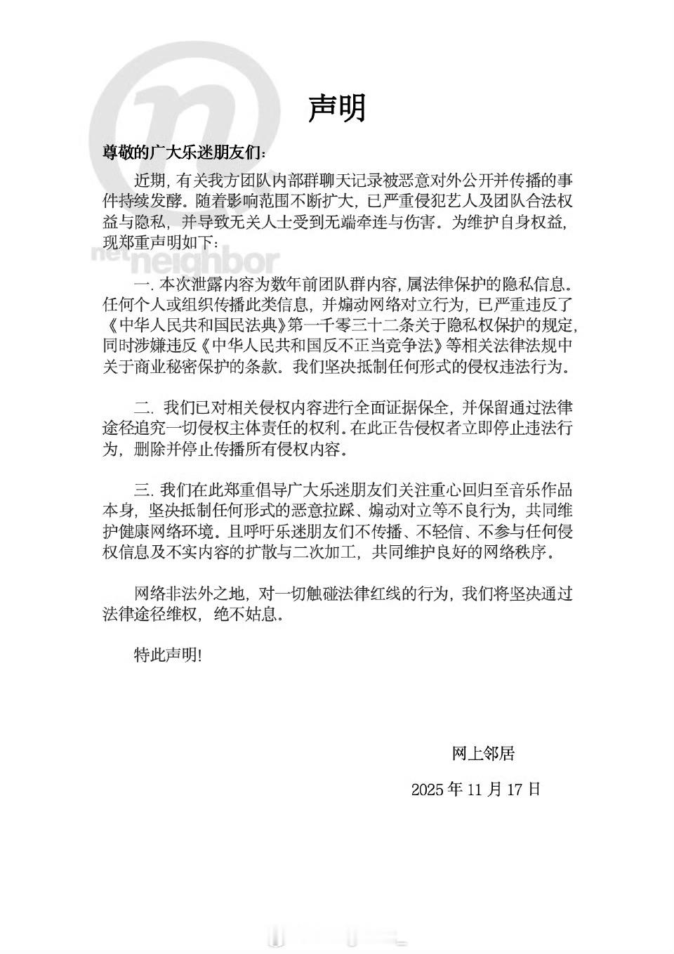 在MISTERK公开聊天记录开怼河南说唱之神后,河南神厂牌网上邻居发布声明,表态本次泄露内容为几年前的聊天记录,并且违法,将通过法律途径维护权益!MISTERK回应:持续等待诉讼中…这个没有公章有点像编的,不过也证明了我没撒谎。不要把大家当法盲。