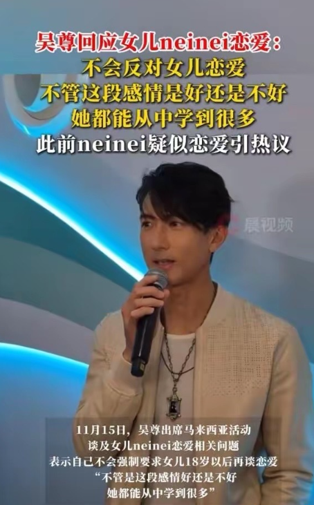 十年前在《爸爸回来了》里,吴尊还是那个为女儿未来婚礼落泪、列出“准女婿十大准则”的极致“女儿奴”。如今面对NeiNei半年内两度传出的恋情传闻——从3月被拍牵手出游,到10月社交平台互艾特,他却跳出了传统严父的框架,以“成长路上,爱与边界同样重要”的表态给出答案。 吴尊坦言自己15岁便有初恋经历,与妻子更是16岁相恋修成正果,因此没资格对女儿的情感萌动说教。他没有选择粗暴干涉,而是强调引导女儿自我保护、专注学业,既给了孩子尊重与体面,也守住了成长的底线