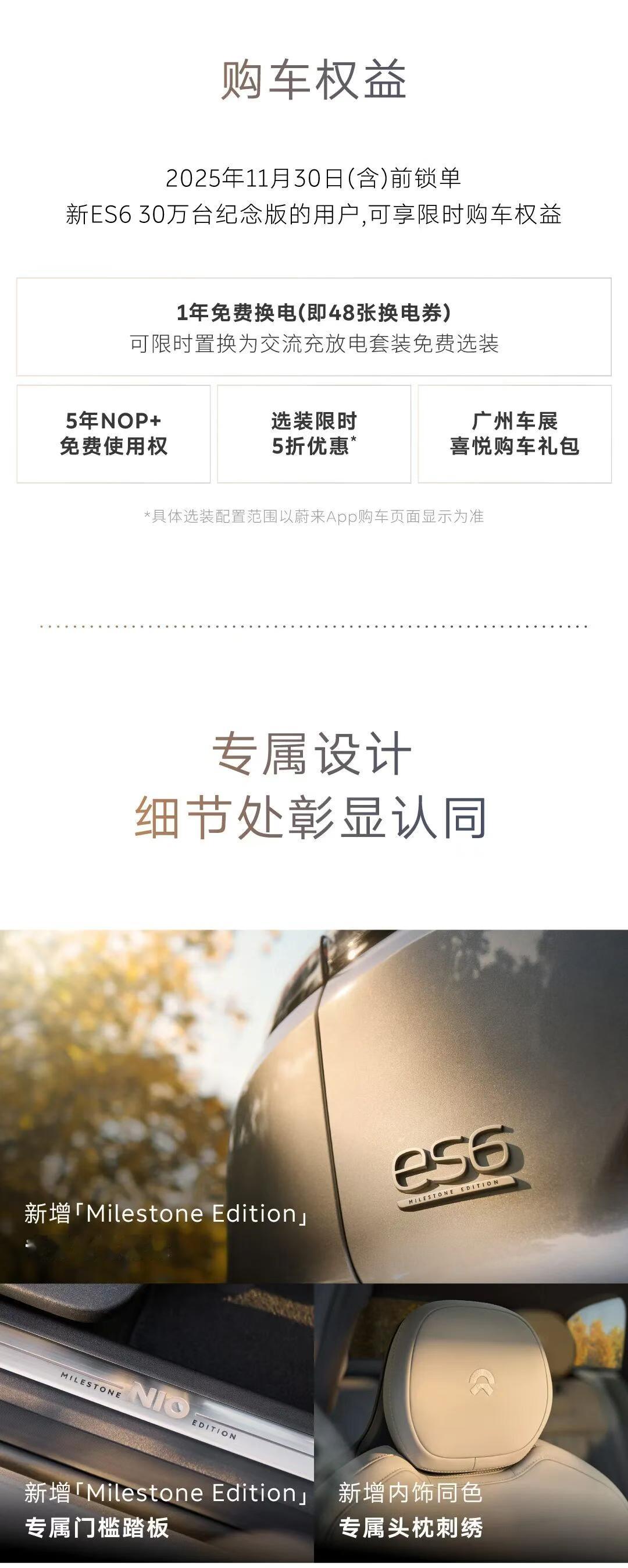 租电售24.18万元!蔚来ES6 30万台纪念版车型上市
