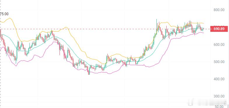 BNB最新交易思路:近期全程处于下行格局,在中轨下方反复震荡,均线系统持续形成压