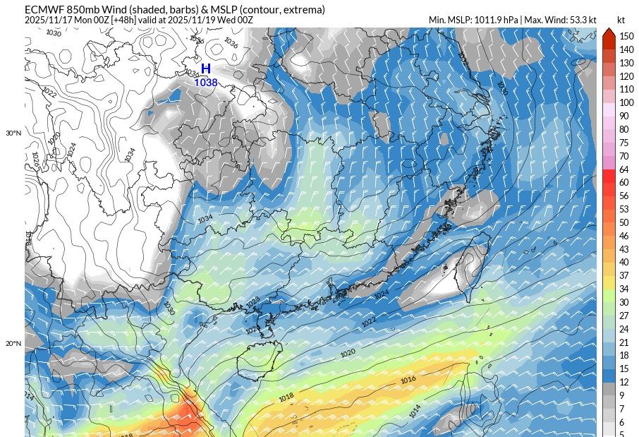 【海南岛即将迎来一轮明显的大风降温天气过程|陵气爱发布重要气象事件提示】 一股实力强劲的冷空气正在持续南下,预计其即将于明天(11月18日)早晨前后开始影响海南岛,将制造一轮明显的大风降温天气过程。 预计此次冷空气过程最低气温将可能出现在11月19日早晨前后,届时海南岛大部地区的最低气温将可能降至15℃左右或以下,中部山区及西北部内陆的局部地区的过程最低气温更是可能降至个位数。 后续,小陵将会密切关注,并将适时启动相应的关注响应。 小陵气象航天时间·陵水气象爱好者 2025年11月17日17时