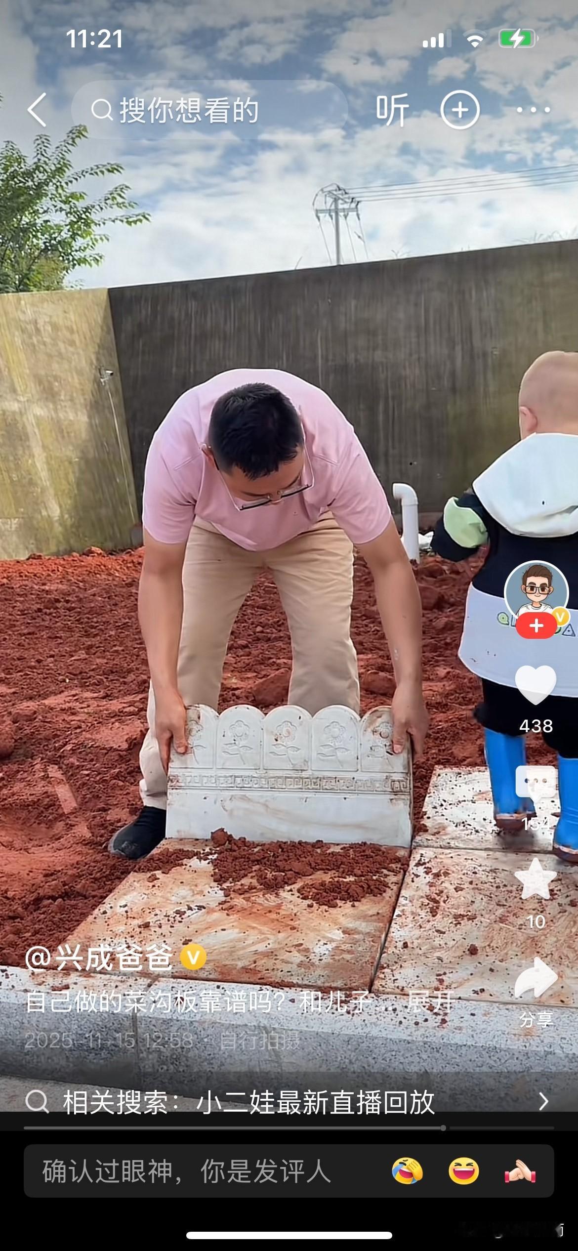 小二娃带着儿子修整花园,终于听到鹅姐开了金口,只闻其声,不见其人。 鹅姐唤孩子过去,让他别打扰爸爸干活。孩子时不时会朝鹅姐那边张望,看来他们相处得还不错。毕竟在孩子的世界里,一切都是美好的。 有粉丝留言提醒小二娃,要时刻留意继母,别让她背地里欺负或虐待原配前妻的孩子(尤其是孩子生病的时候)。要是她连小孩都欺负,那就是没把你放在眼里。等小朋友长大后,你也要为前妻的孩子争取福利,做到一视同仁,别只偏袒那个女人和她的孩子,对自己的孩子要一碗水端平,这才是三观正的人该做的事。 不得不说,粉丝真是操碎了心! 小二娃对自己的孩子,肯定会好的,不管孩子是谁生的。毕竟虎毒不食子嘛。 大家怎么看呢?@兴成爸爸 小二娃婚变