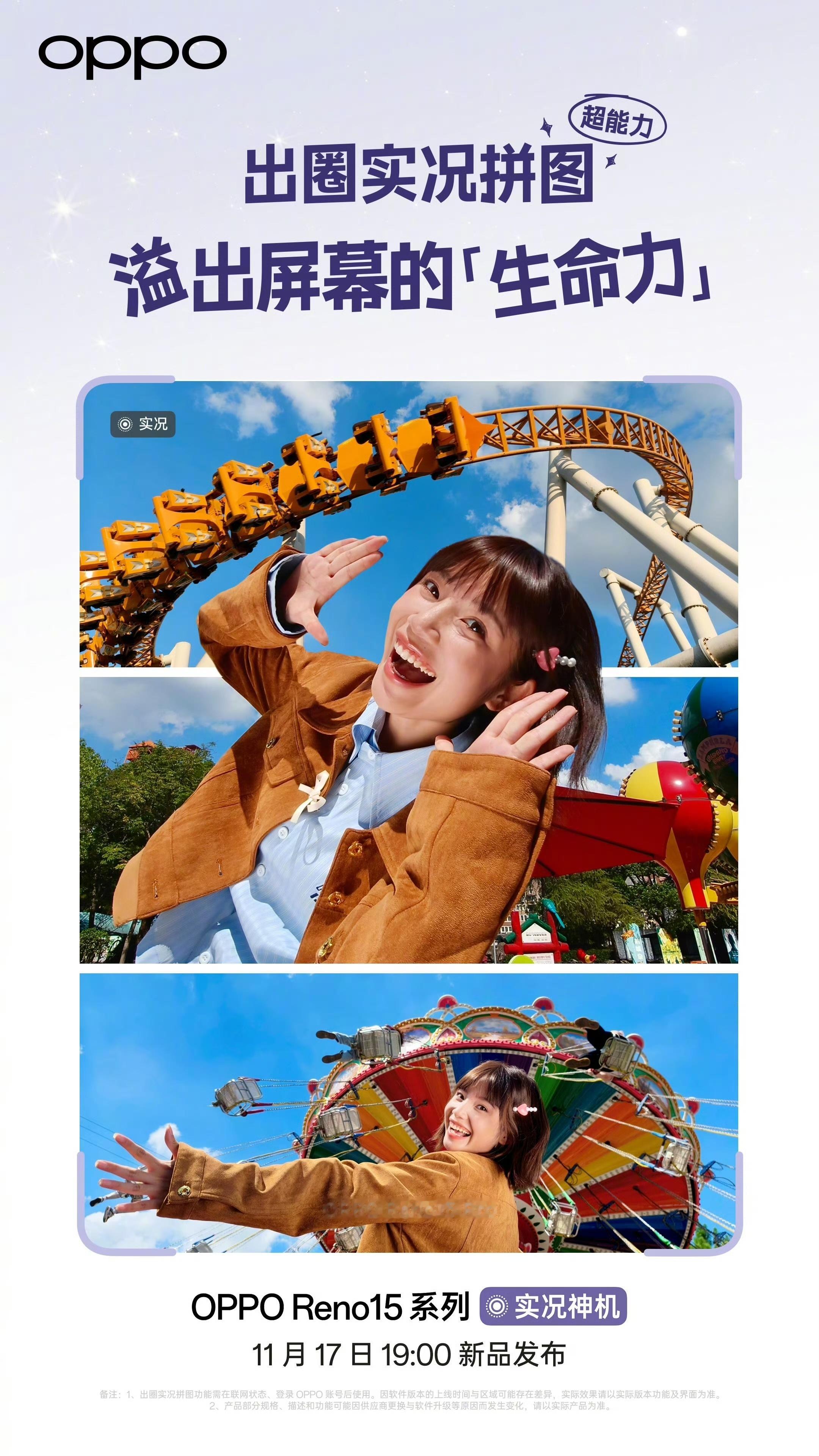 livephoto,也就是我们俗称的实况照片,别看我平时发的不多,但是我经常会拍大量的实况照片。相比起常规的静态照片,实况照片确实可以帮你更好的保存珍贵的时刻。除了苹果,近几年给实况照片玩出花的国产手机非OPPO Reno系列莫属了,我自己也有一台Reno14一直在用,真的超出片~OPPO这次的Reno15,在实况照片的功能上又进化了,五大黑科技,出圈实况拼图、超广角自拍实况、CCD实况、4k视频转实况甚至是前后镜头一起拍实况,不得不说,这对于一生都要出片的中国女人来说也太对胃口了,满满的都是溢出屏幕的生命力,也和代言人 完美契合,一刷到就被种草了,这下 也不得不买了