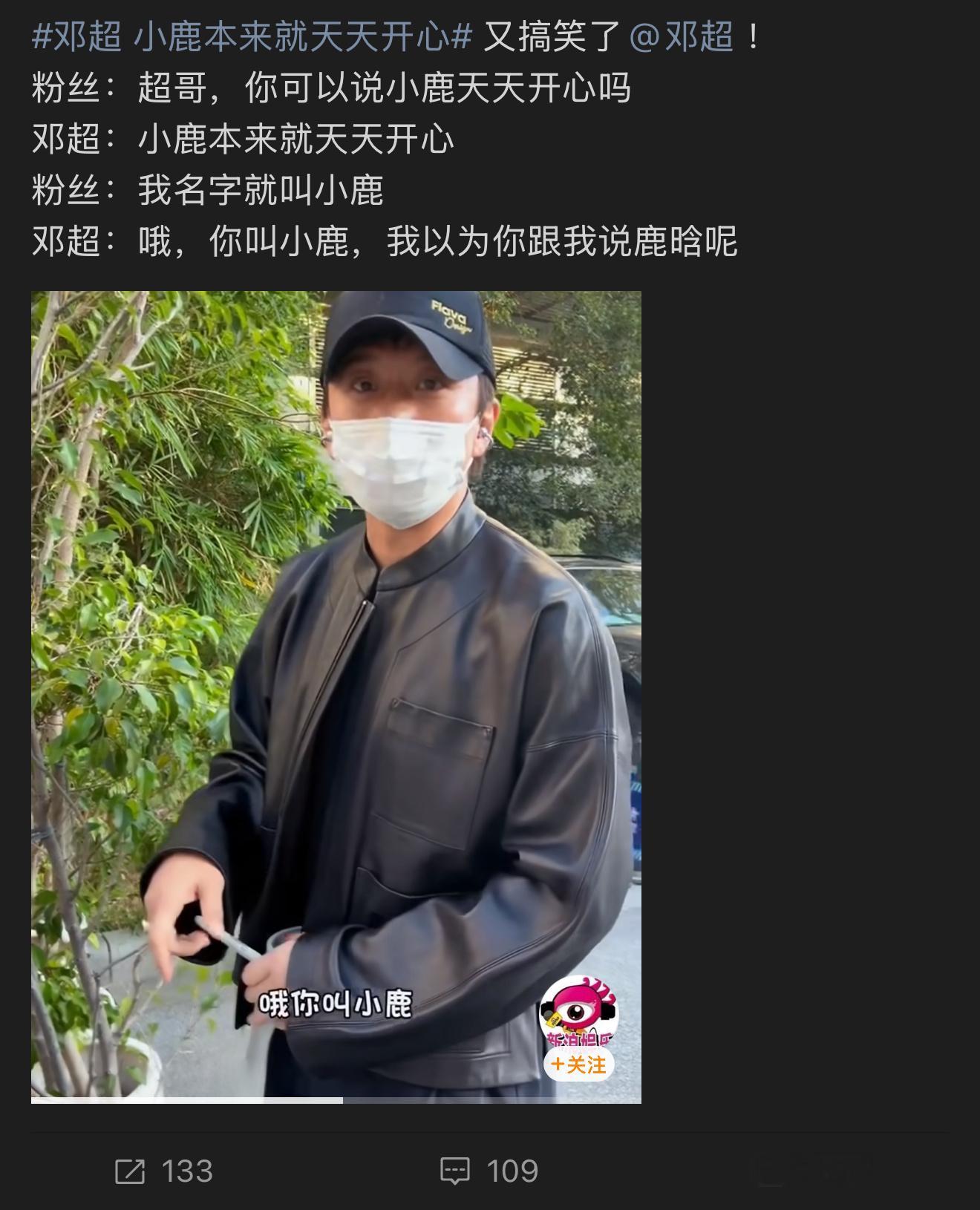 哈哈哈哈,邓超不愧是鹿晗野爹,听到“小鹿”俩字第一反应是鹿晗