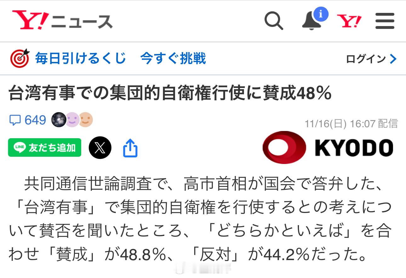 一半的日本人支持高市早苗“台湾有事日本有事”。