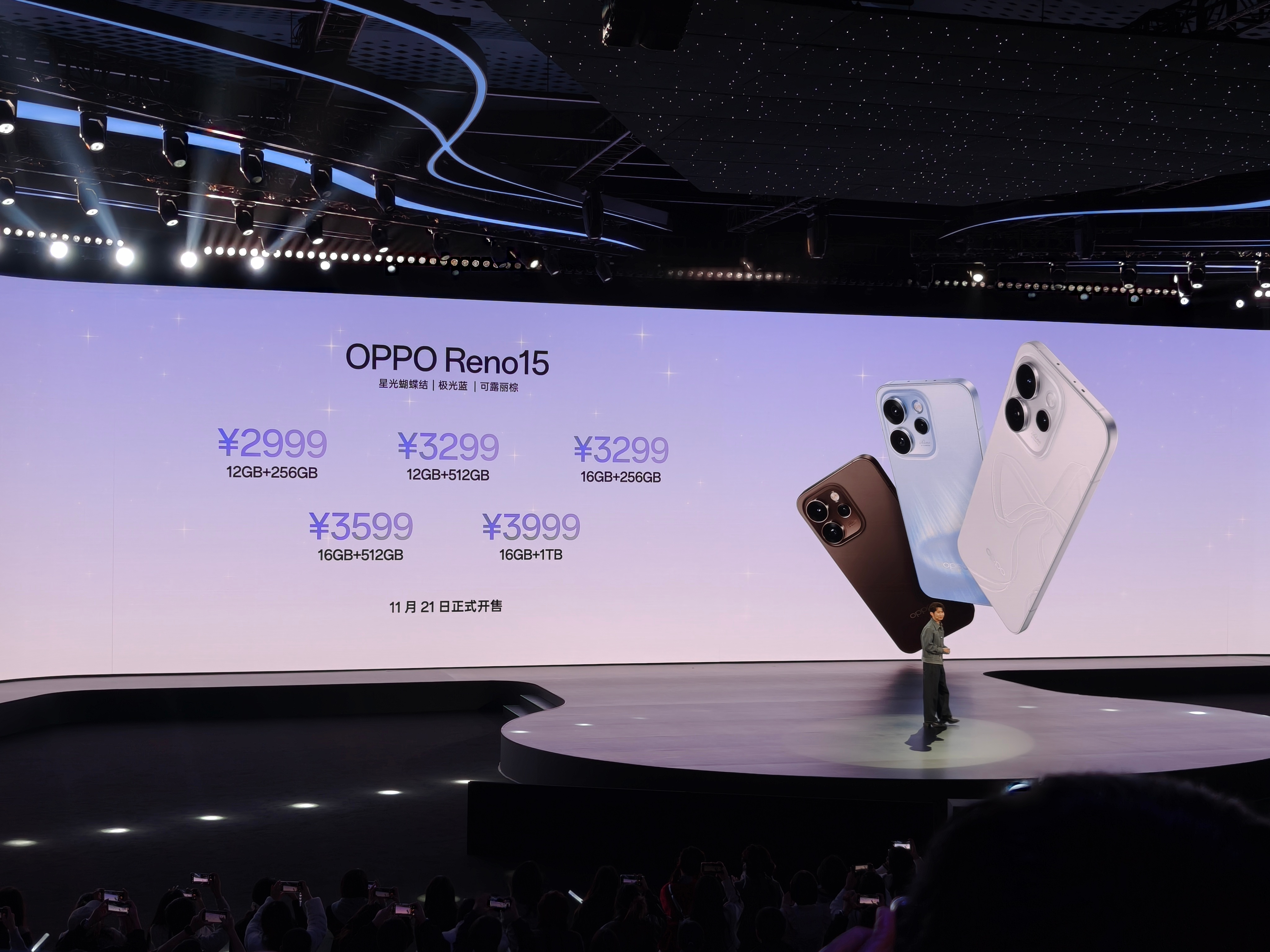 OPPO Reno 15 系列价格出来了:Reno 15,2999 元起。Reno 15 Pro,3699 元起。感觉这种潮流线下定位的机型,你拿它跟那些纯线上机型比性价比肯定打不过,但这类线下机在质感这块做的确实不错,而且影像也有很多玩法跟亮点,整体也比较均衡。然后就是实况玩法特别多,拍 4K 视频同时可以直出 4K 实况、视频帧画质媲美封面帧、前后摄像头可以同拍实况,还有实况补光自拍,拍完还能让实况拼图中的人物出圈。另外这次 Reno 15 Pro 宣传都是围绕直播来说,之前我还寻思着 Pro 用的芯片跟标准版一样,摄像头配置也差不多,怎么拉开差异,敢情在这块