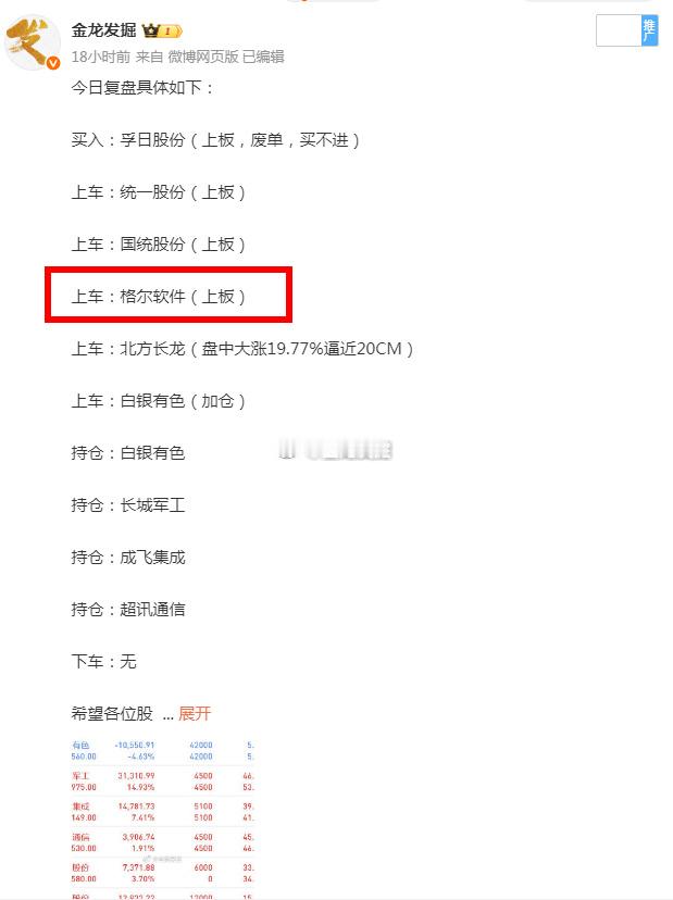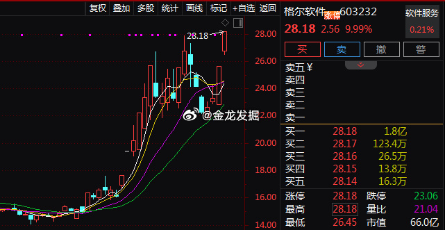 板了!板了!$格尔软件 sh603232$ 今天第一只打板标的!