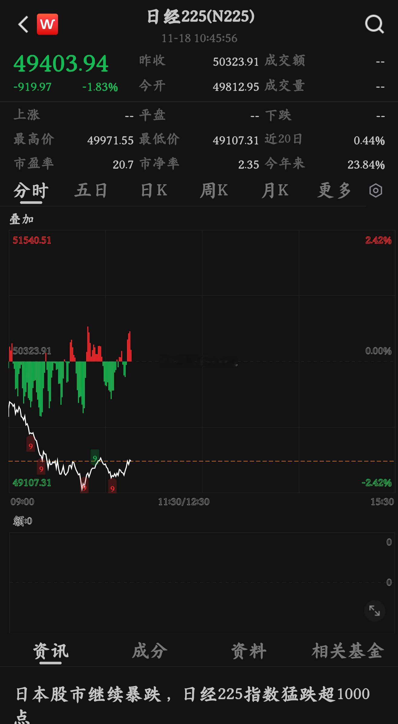 东京股市日经指数18日盘中一度下挫逾千点。 前一日官方披露的宏观数据显示,2025年三季度日本实际国内生产总值(GDP)较上季度减少0.4%,按年率计算为下降1.8%。这是日本经济六个季度以来首次出现萎缩。