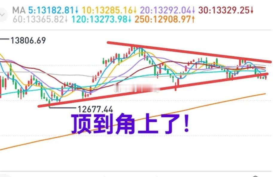 A股:大盘被顶到角上了,要有选择了!当前阶段,保持账户的合理流动性是明智的。上周四的时候,一哥提醒逢高减仓。理由是深成指分时趋势趋势处在三角形末端,即使向上突破,上涨空间也是有限的。结果周五直接低开低走,跌了260点。从形态来看,深成指实际上已经跌破了三角形的下轨趋势线(图)。目前下轨趋势线已经上升到了13250~13260点区域。也就是说,如果深成指反弹到上述区域,会遇到压力。当然,如果能重新站上13300点区域,短线继续下跌的风险就暂时解除了。再来看看上证综指。昨天跌破了MA20均线(3978点),这是近一个月以来,上证首次收盘跌破均线。这暗示市场已经趋于弱势了。上周说的2条防线:3990点,3980点。都失守了。这两条防线也会成为大盘反弹的阻力区域。昨天的市场反弹,是深强沪弱。一哥上周讲过,上证虽然创了新高,但实际上是属于补涨范畴。深成指高点是13806点,是10月9日产生的,昨天收盘13202点。上证综指高点4034点,是11月13日产生的。在上证补涨的过程中,深成指持续调整,表现是比较拉胯的。昨天的沪深强弱转换,是不是意味着沪市补涨结束了呢?如果深市不能把枪接过去,而沪市又疲软,那么整个市场就没啥戏了。年底了,各路资金各自混战。这个时候,切忌盲目追高,因为部分资金可能拉一波就跑,投资者一个不慎,就可能接了飞刀。个人观点,仅供交流,不构成投资建议!理财有风险,投资需谨慎!