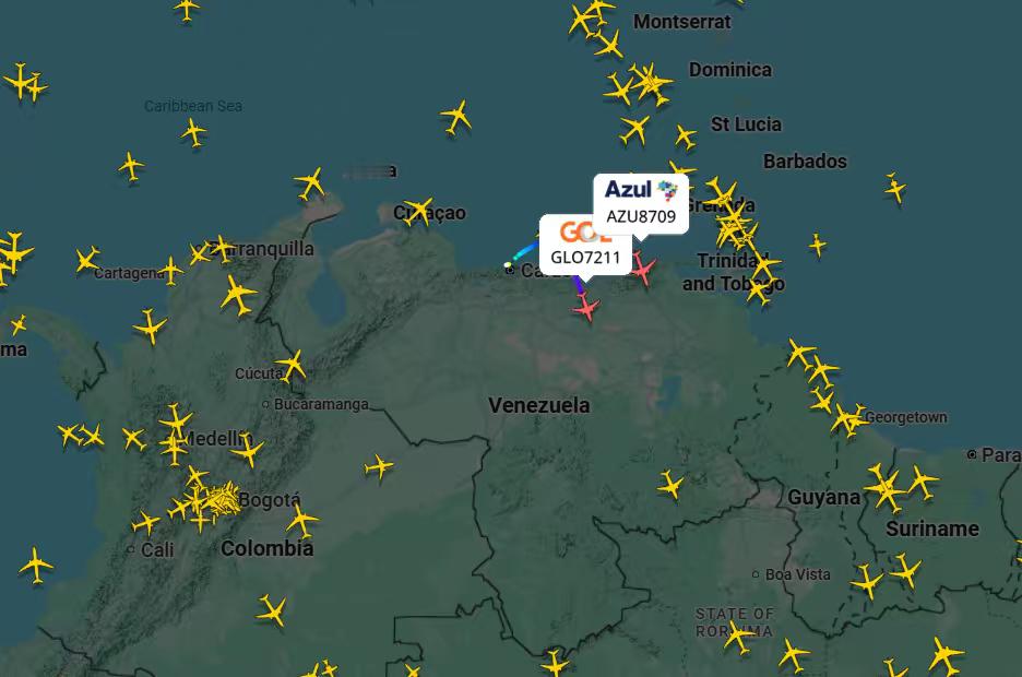 当地时间13号晚上(北京时间14号清晨),美国战争部长赫格赛斯发文宣布:特朗普总统下令采取行动——陆军部正在兑现。今天,我宣布南方之矛行动开始,南方之矛联合特遣部队由美国南方司令部领导,这项任务保卫我们的家园,将毒品恐怖分子从我们的半球清除,并保护我们的家园免受杀害我们人民的毒品的侵害。西半球是美国的邻国——我们将保护它。(图1)截止北京时间今天下午两点,目前委内瑞拉空域仍然有民航客机在执行飞行计划(图2)希望美国🉑别雷声大雨点小,做个秀就赶紧宣布任务完成,就为了给花了几个月大张旗鼓的在加勒比地区部署如此大规模的军事集结找个台阶下而已,也让全世界看看 的军事入侵威力是不是还像当年海湾战争那么极具震撼力,当然也更会让全世界明白美国霸权对这个蓝星才是最大的威胁……对了,之前有以色列媒体消息曝出美国要求以色列在本月底前不要对黎巴嫩真主党发动大规模军事行动会不会也和这事有点关联呢?毕竟让现在工业空心化如此严重的美国同时应对两个地区战争是非常危险的状况……让美国再次………不对,应该是让多级世界再次伟大(Make the Multipolar World Great Again)!