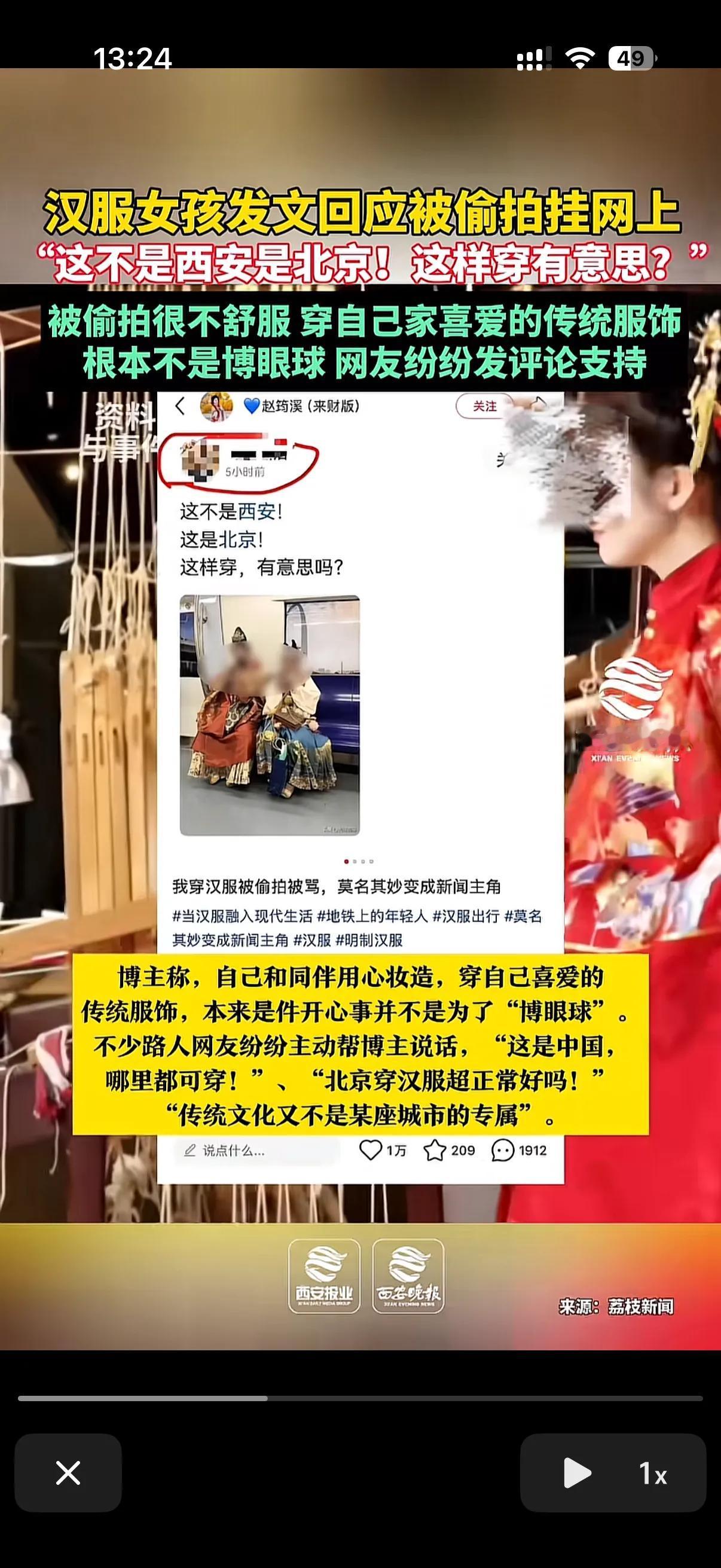 穿汉服还需要选择城市么? 太气愤了,一位美妆博主来北京参加汉服活动!穿汉服乘坐地铁的时候,被有心人拍下来,然后发到网上称,这又不是西安,这是北京,这样穿不就是为了博眼球么? 谁规定来北京旅游拍照必须穿格格装的啊! 谁规定在故宫里不能穿汉服拍照的? 作为民族服装,不论是汉服也好还是其他民族服装,只要不是奇装异服,别说是在北京地铁里穿,就是去以前的清朝皇宫里穿,拿你也管不着! 现在这位美妆博主已经报警了,希望在网上发文嘲讽别人的人,不会后悔!