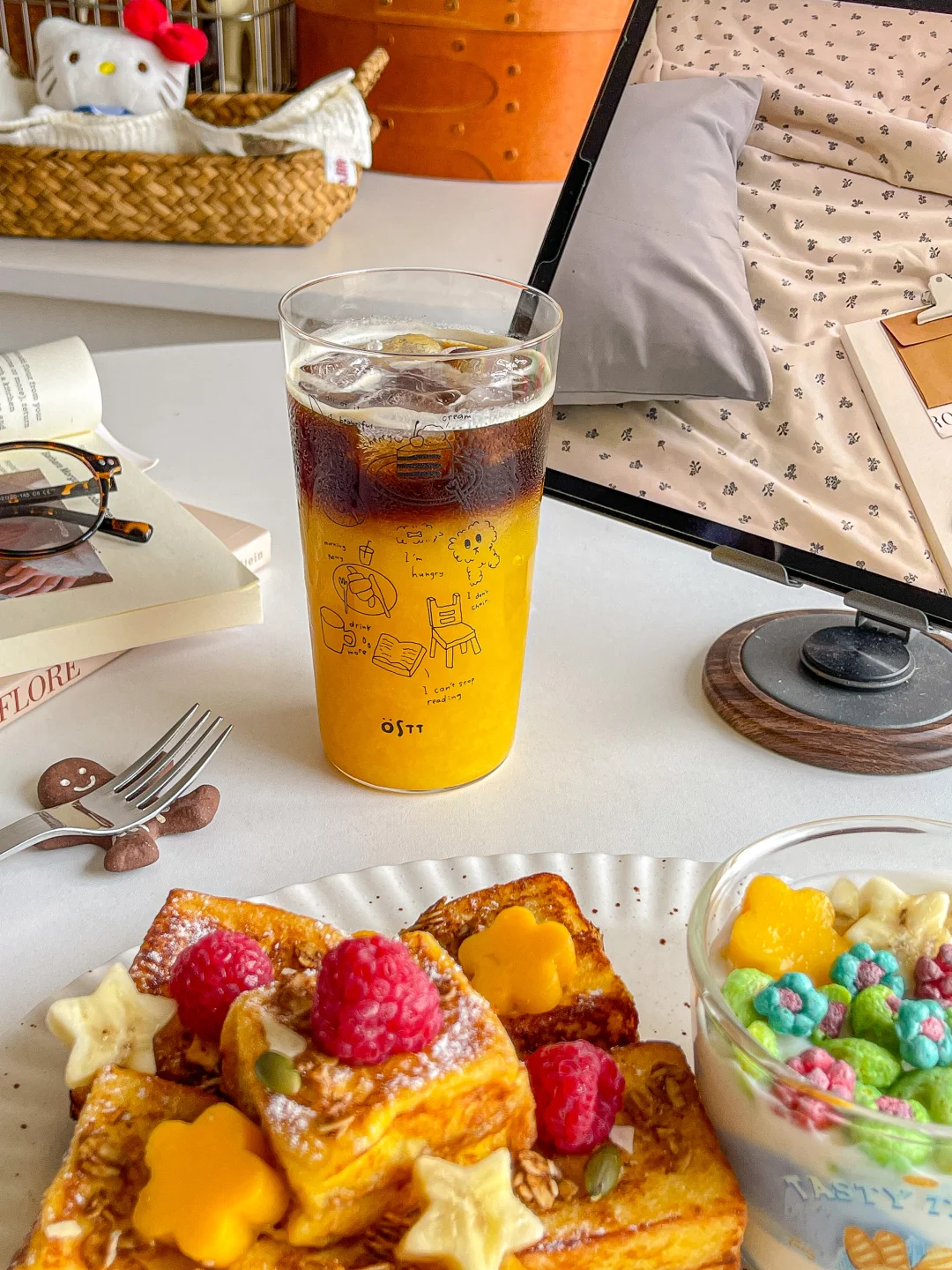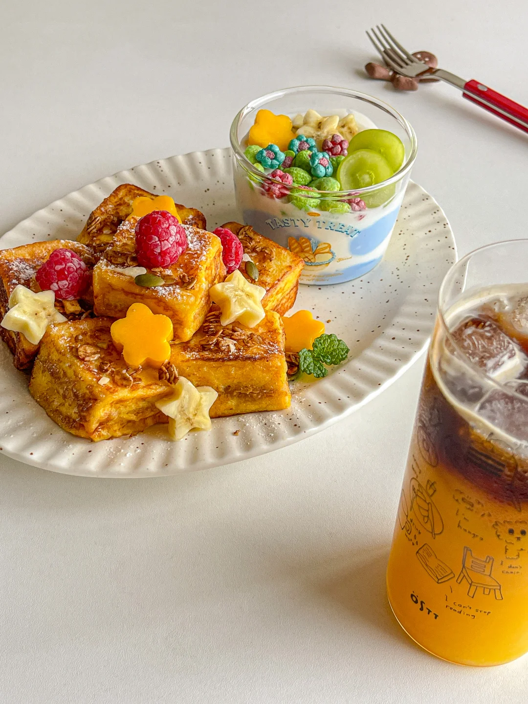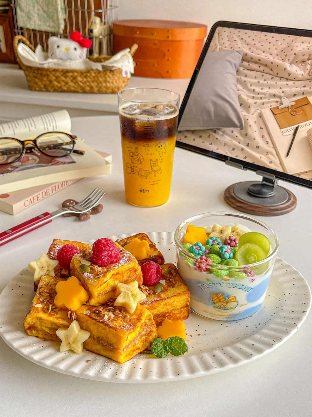 漂亮brunch🍽️西多士酸奶杯🍌橙汁美式🍊