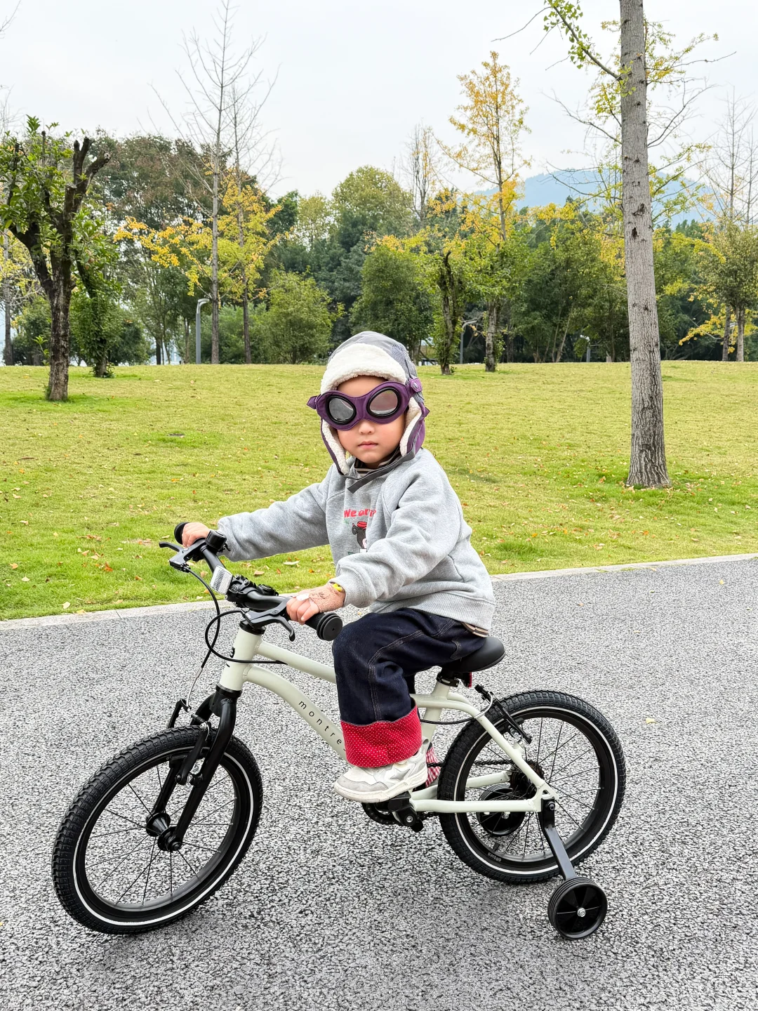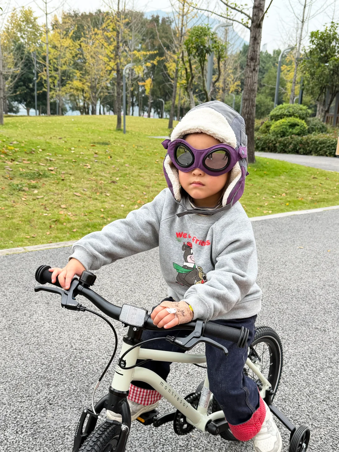 如果骑车的话就可以给孩子戴上护目镜