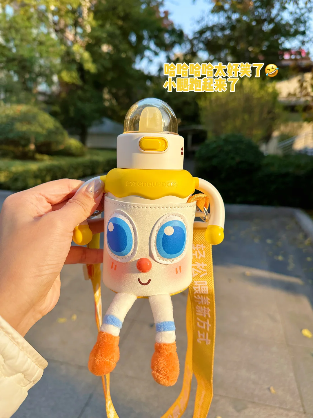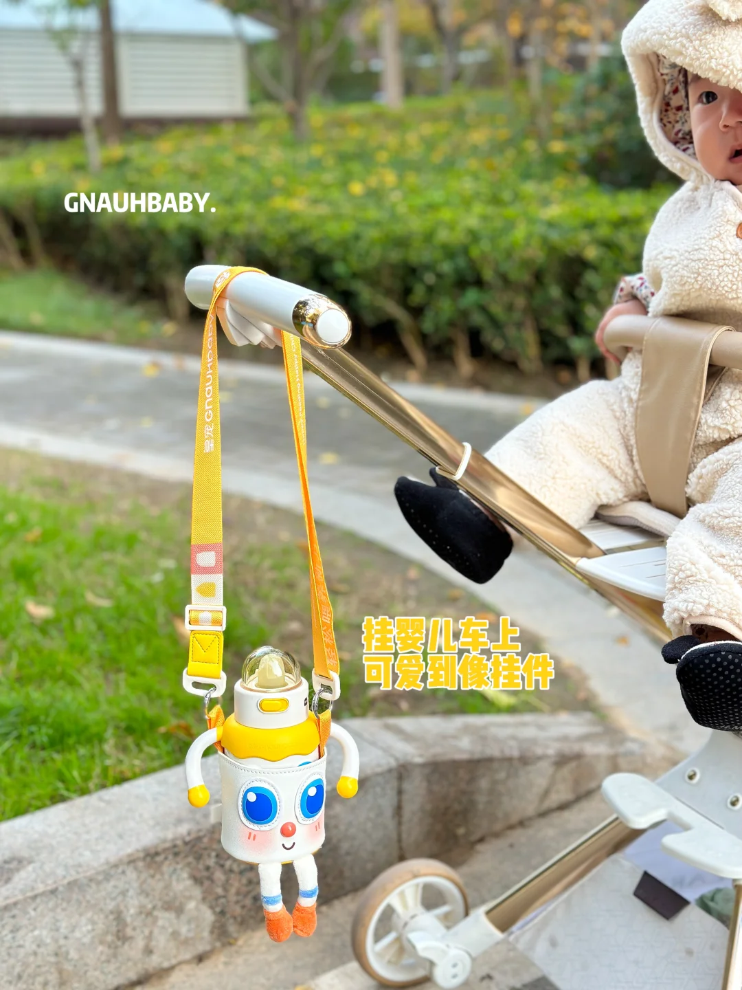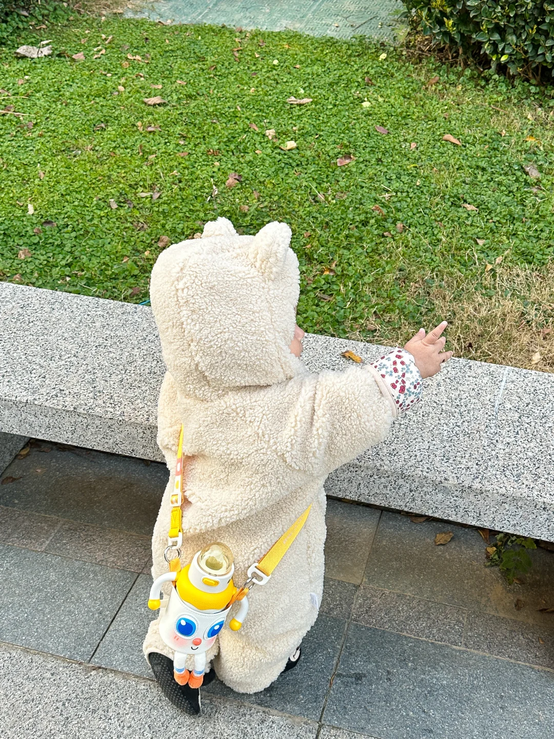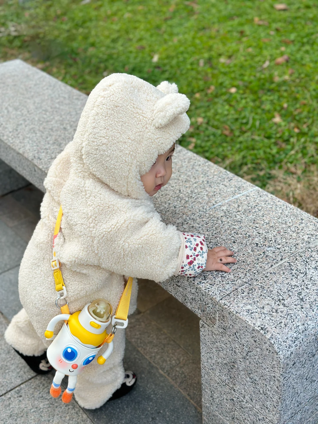 穿着小熊连体衣背着皇宠的保温杯属实可爱☺