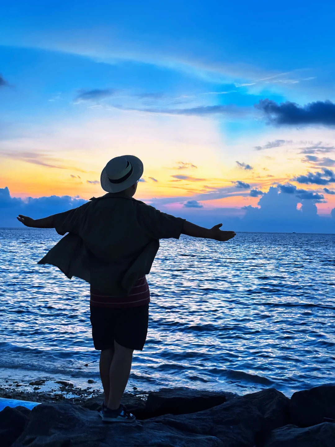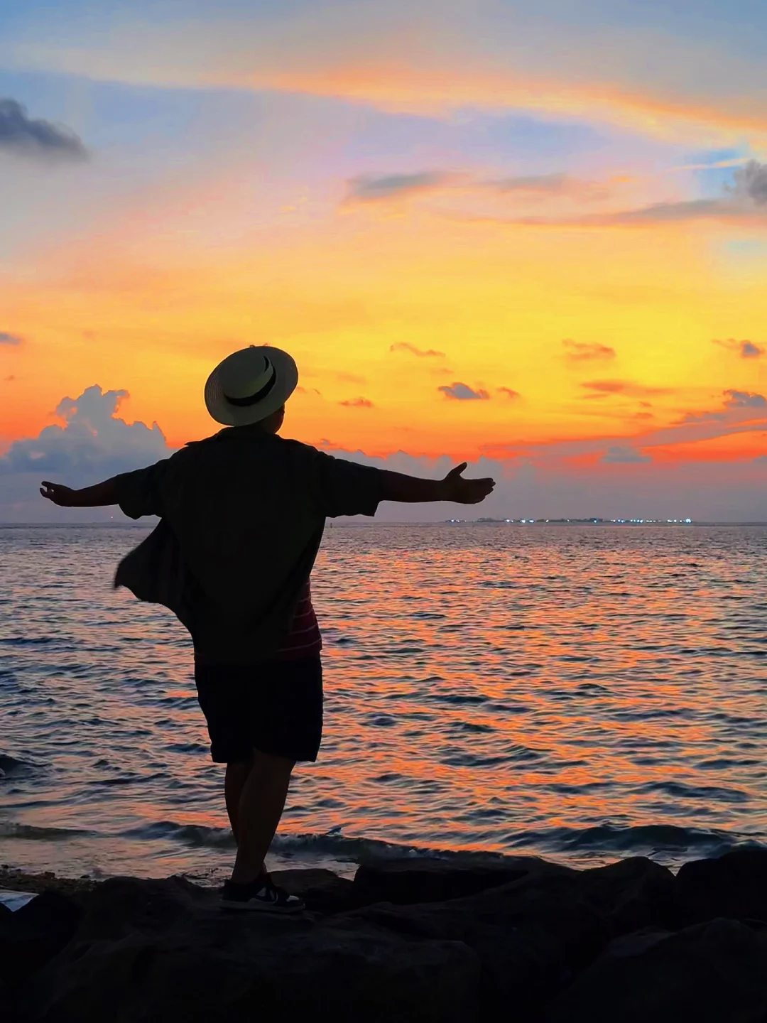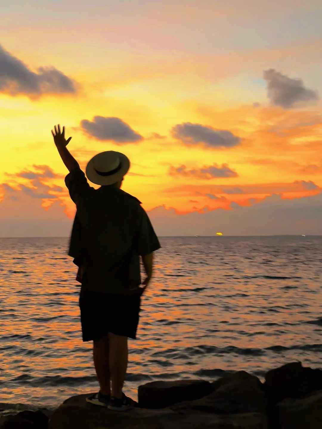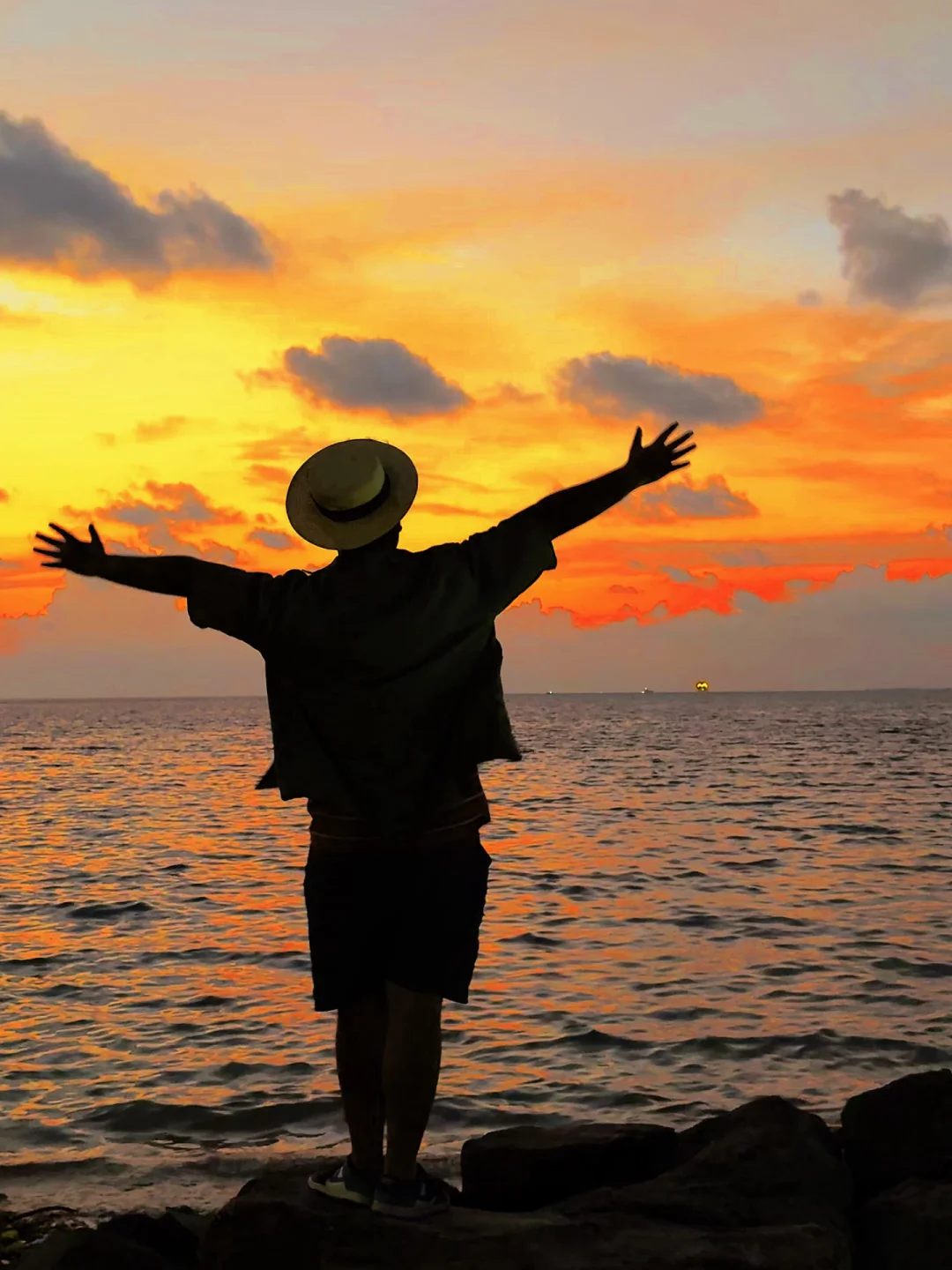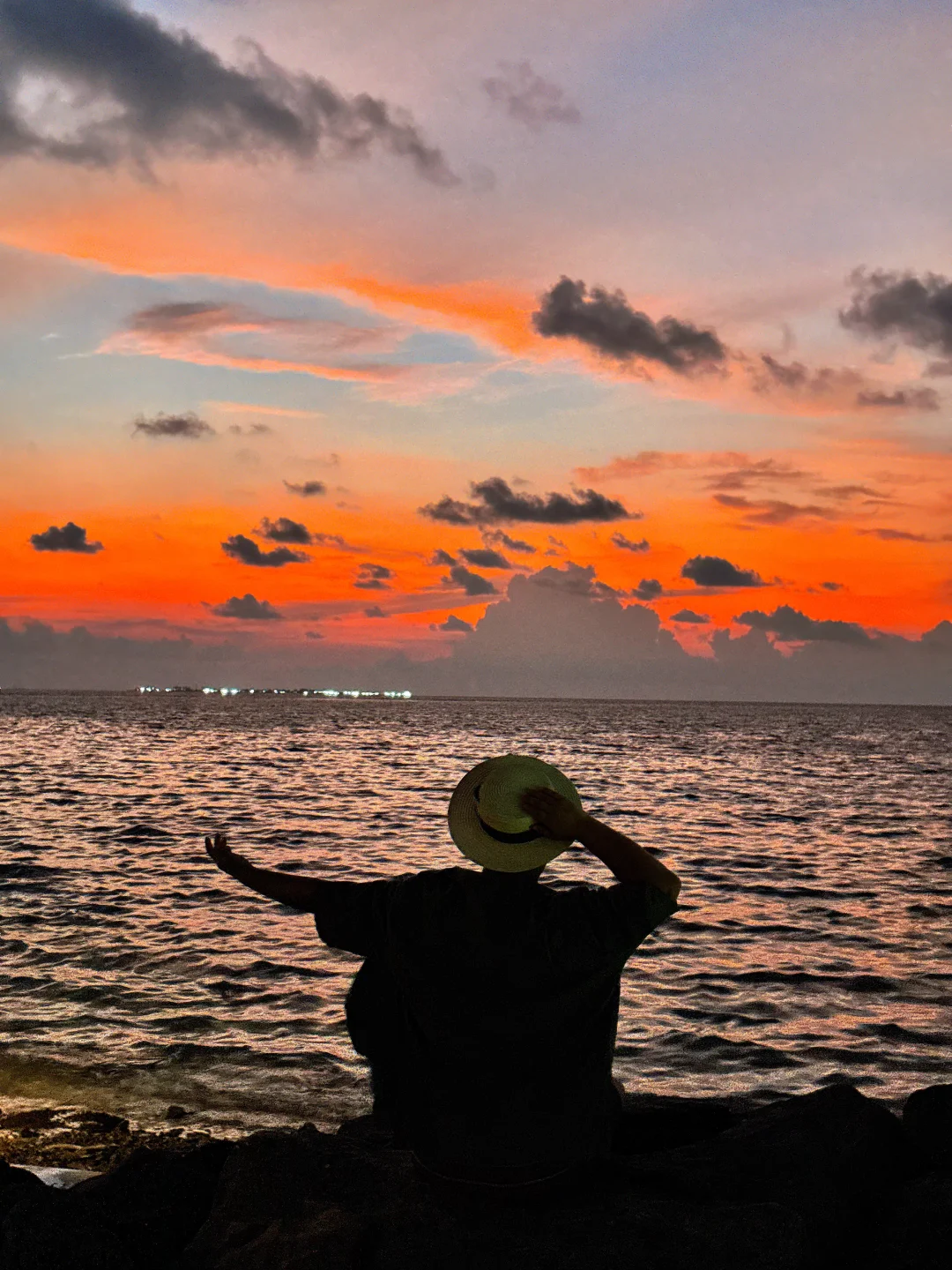 江浙沪牛马来马尔代夫的第一天 就被马尔代夫的冬天美哭了 沙滩礁石,橘子日落,美得像一幅画 仿佛走进了宫崎骏的漫画 . 📍马尔代夫.古莉岛 . 拍照在码头的大堤附近,日落在这边,日出在沙滩这边 .