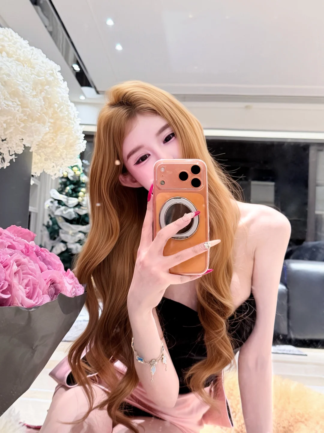 玫瑰 氛围感 ootd 对镜拍 粉色系 公主穿搭发色