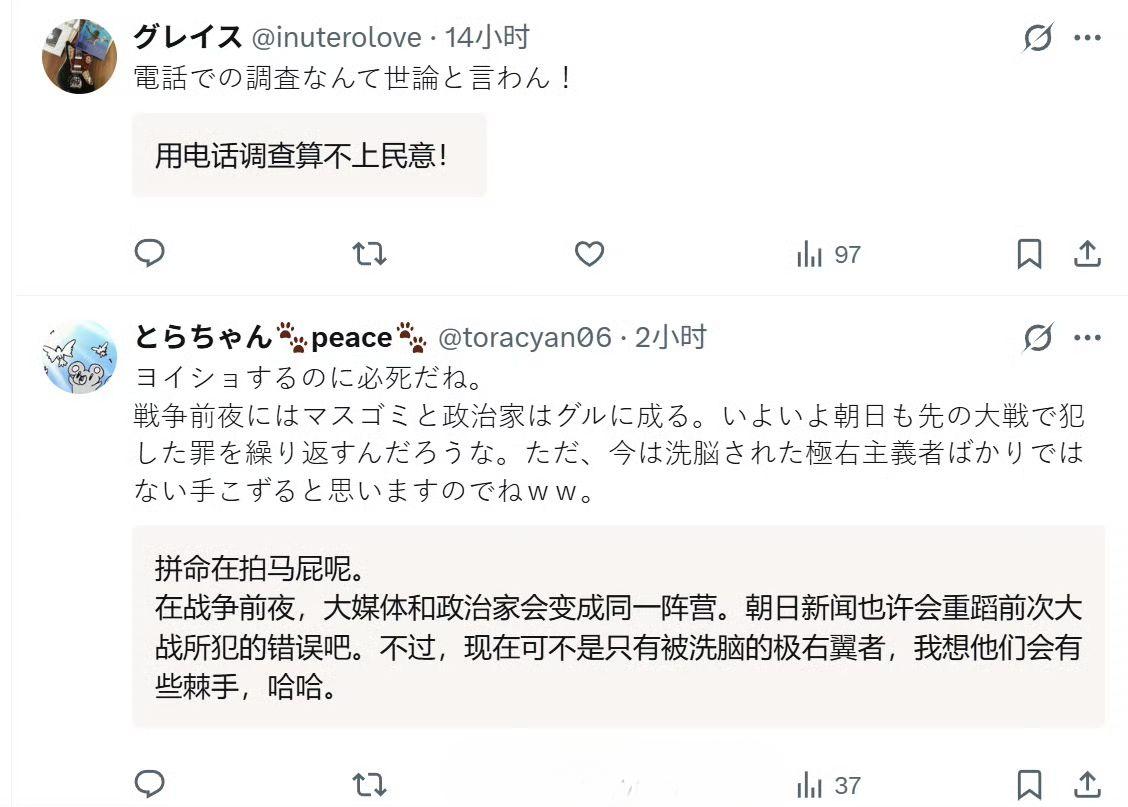 虽然日本遭受“股债汇三杀” ,虽然日本同时得罪中俄朝韩四国,虽然日本经济陷入萎缩,但是高市早苗内阁支持率高啊,网络右翼们一副要组建敢死队效忠的样子。 像极了历史上的某个时间段。
